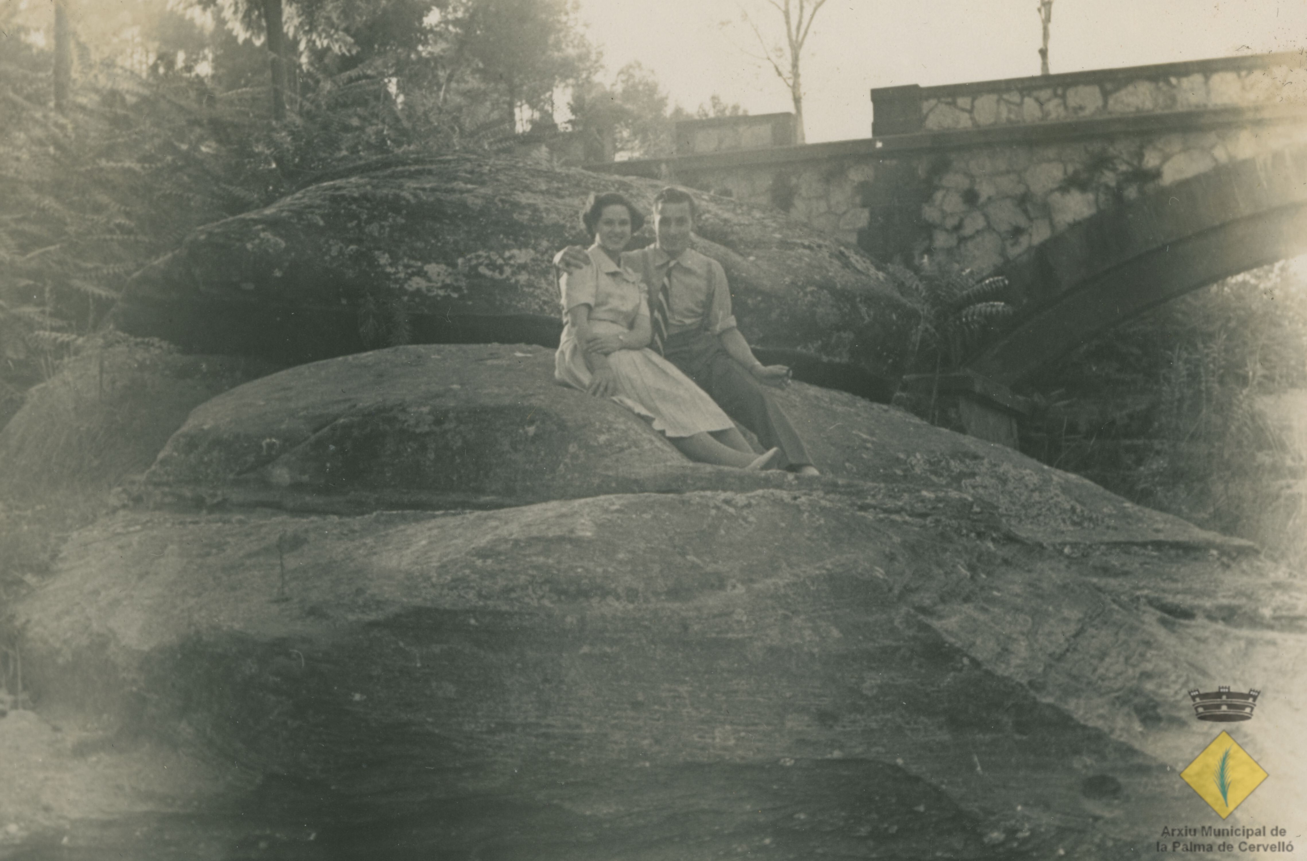 Montserrat Rigol i Josep M. Tintoré sota el pont de la riera de Rafamans a l'entrada de la Palma de Cervelló