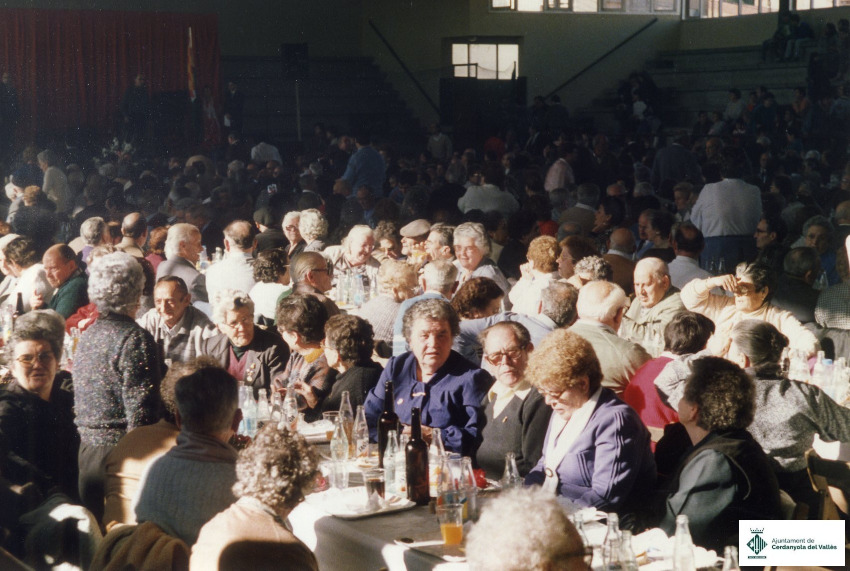 Festa d'homenatge a la gent gran de Cerdanyola del Vallès celebrada al desembre de 1987 al Pavelló Paco Arpide