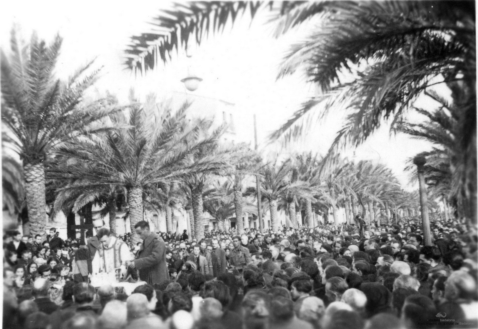 Entrada tropes nacionals a Badalona. Primera missa a la Rambla