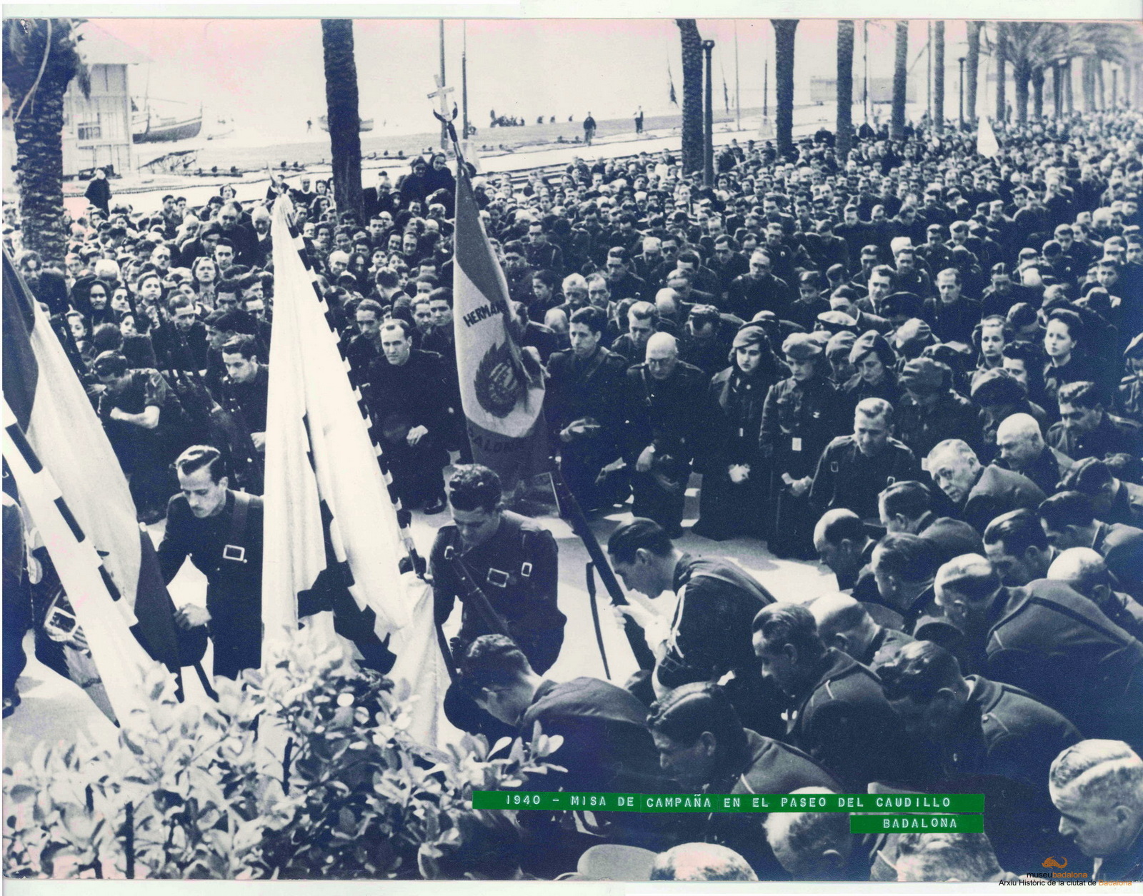 Còpia d'una fotografia. Missa de campanya a la Rambla per celebrar el primer aniversari de l'entrada de les tropes nacionals a Badalona