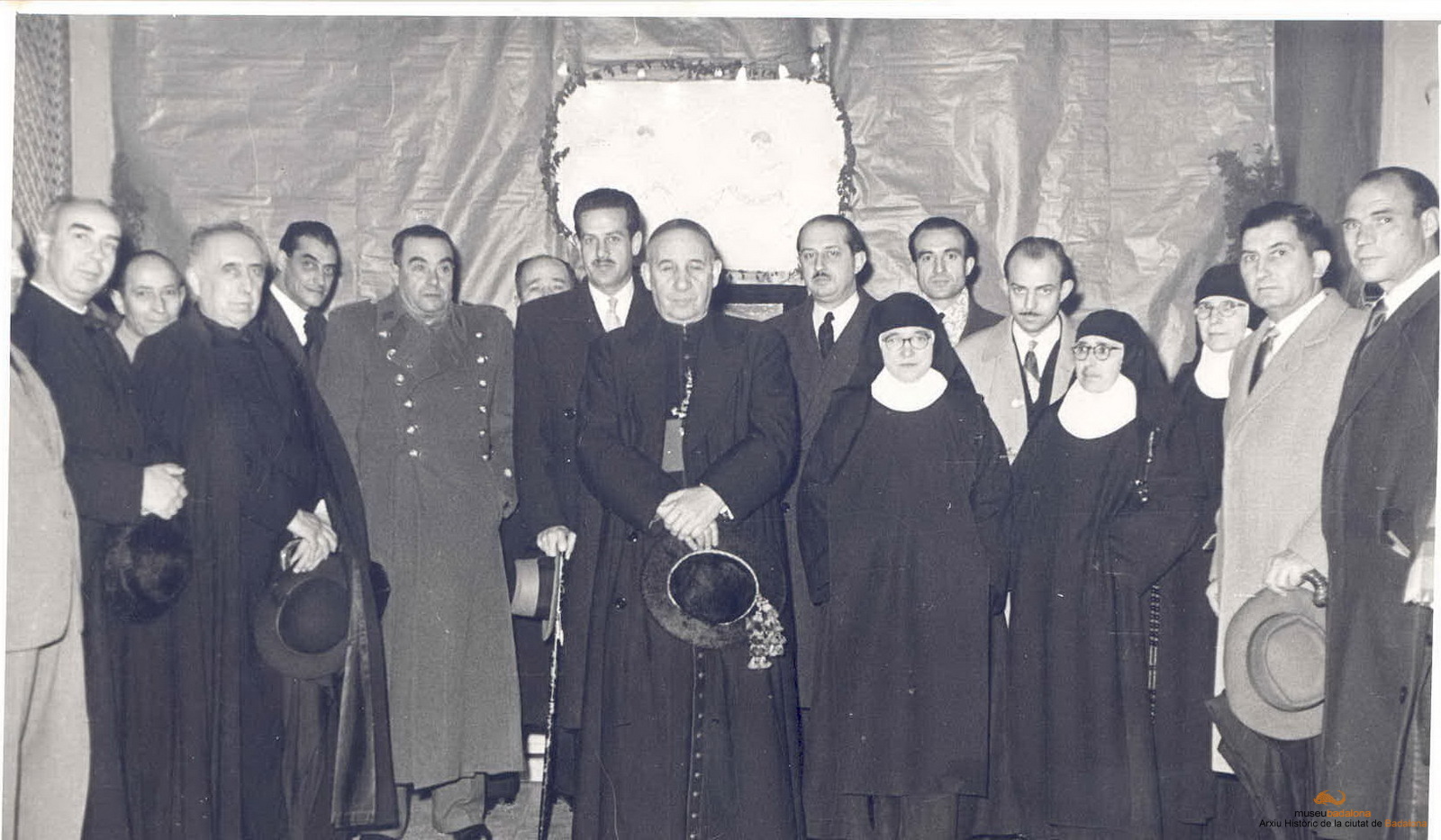 El bisbe Modrego,l'alcalde Lluís Maristany, l'ecònom de Santa Maria, el rector de Canyet i altres persones