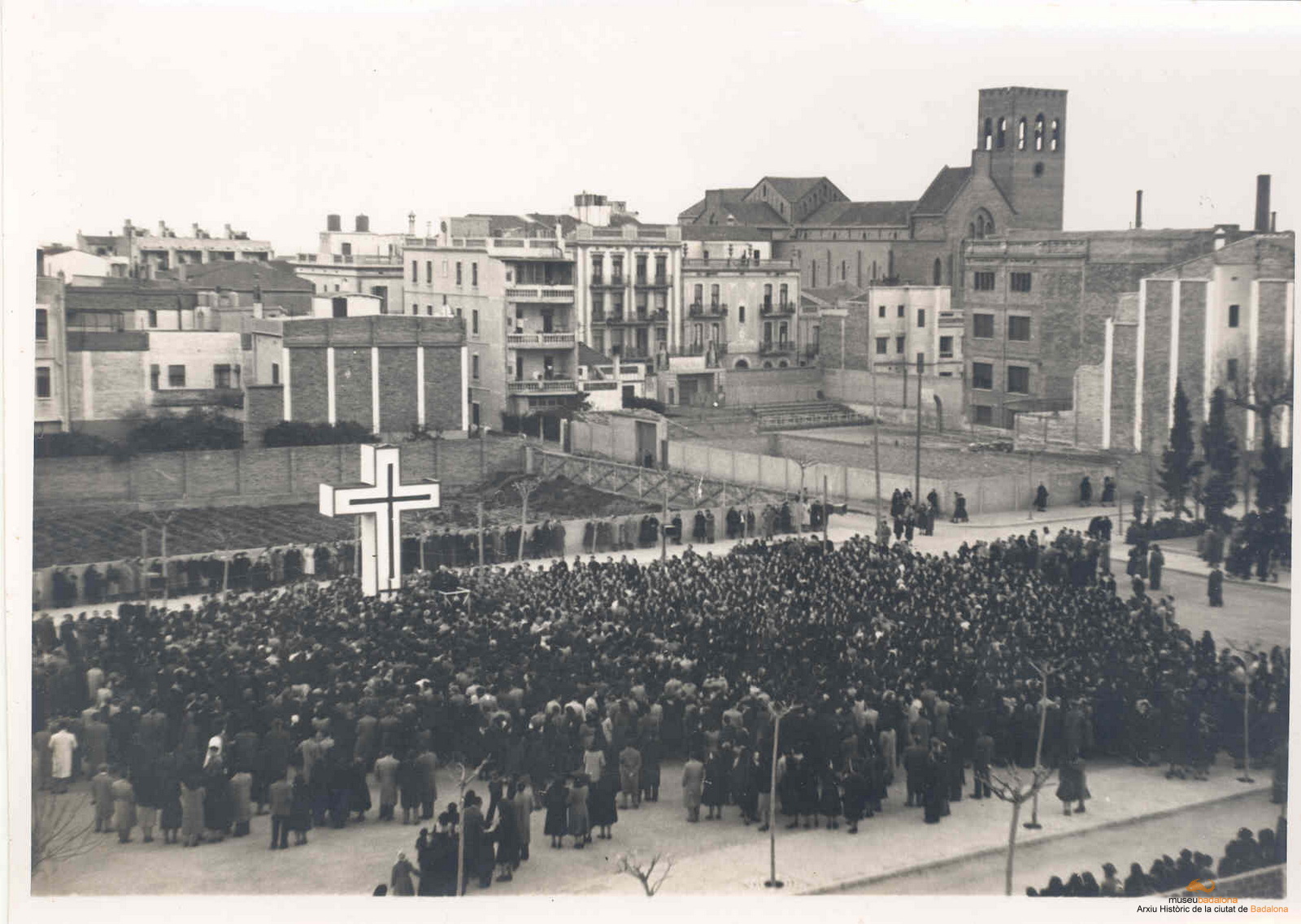 Celebració Santa Missió. Vista aeria de l'acte de comiat dels missioners de la parròquia de Sant Josep. Acte a la plaça de la Plana.