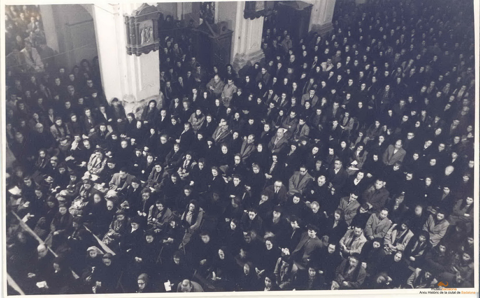 Celebració Santa Missió. Vista aèria de l'interior de l'església de Santa Maria durant una conferència missional