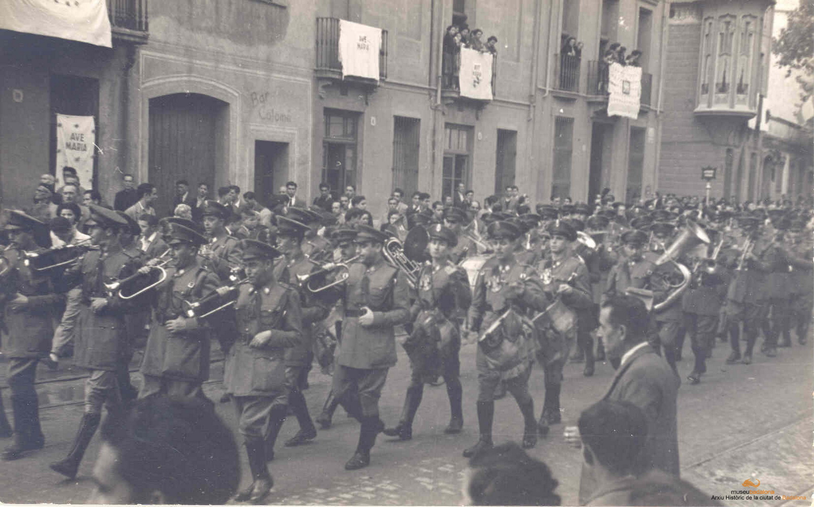 Visita de la Verge de Fàtima i benedicció de malals. Processó pel carrer de Francesc Macià, banda de música