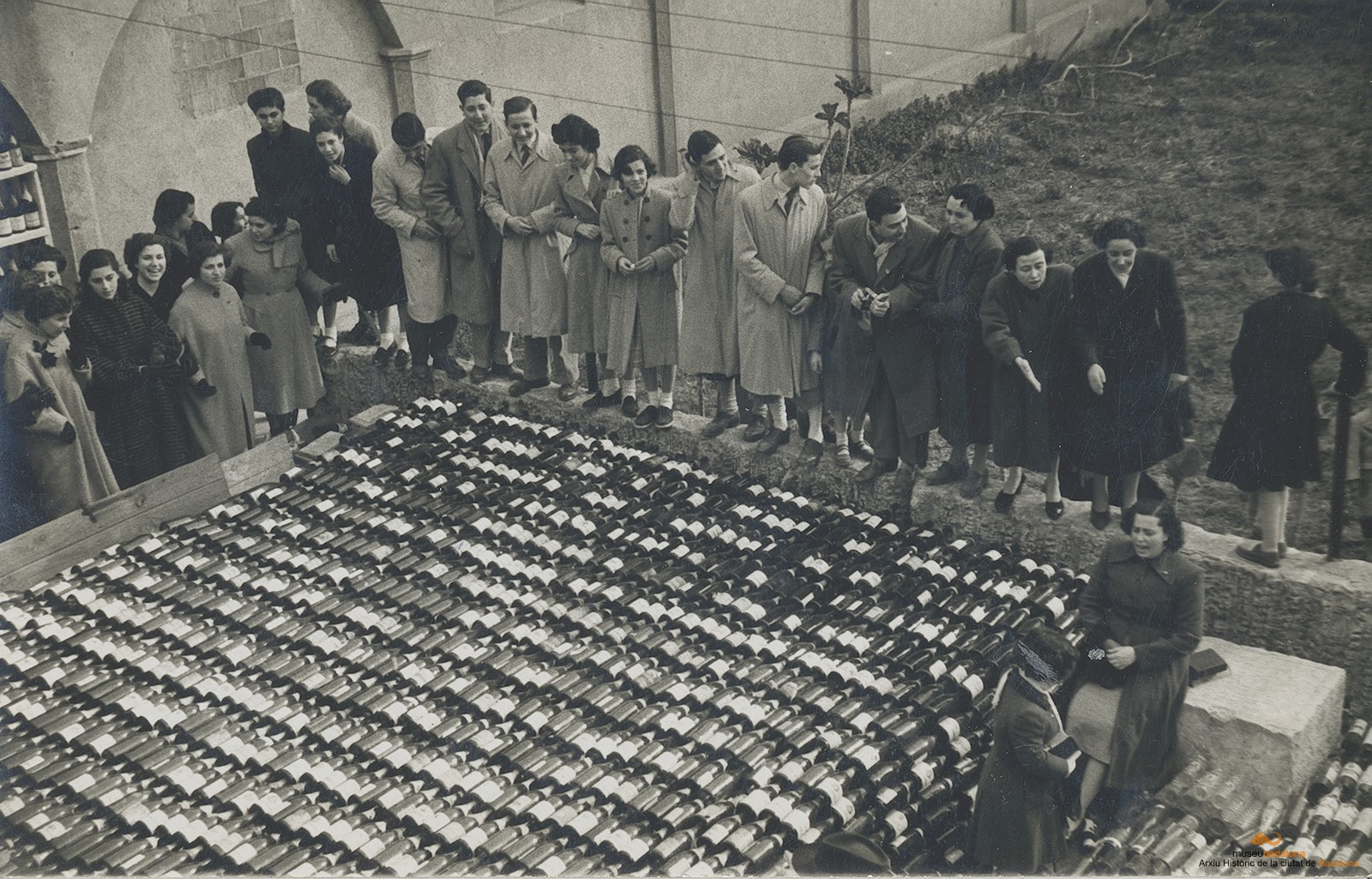 Campanya de la parròquia de Santa Maria de recollida envasos de cava. Envasos apilats al pati de la rectoria
