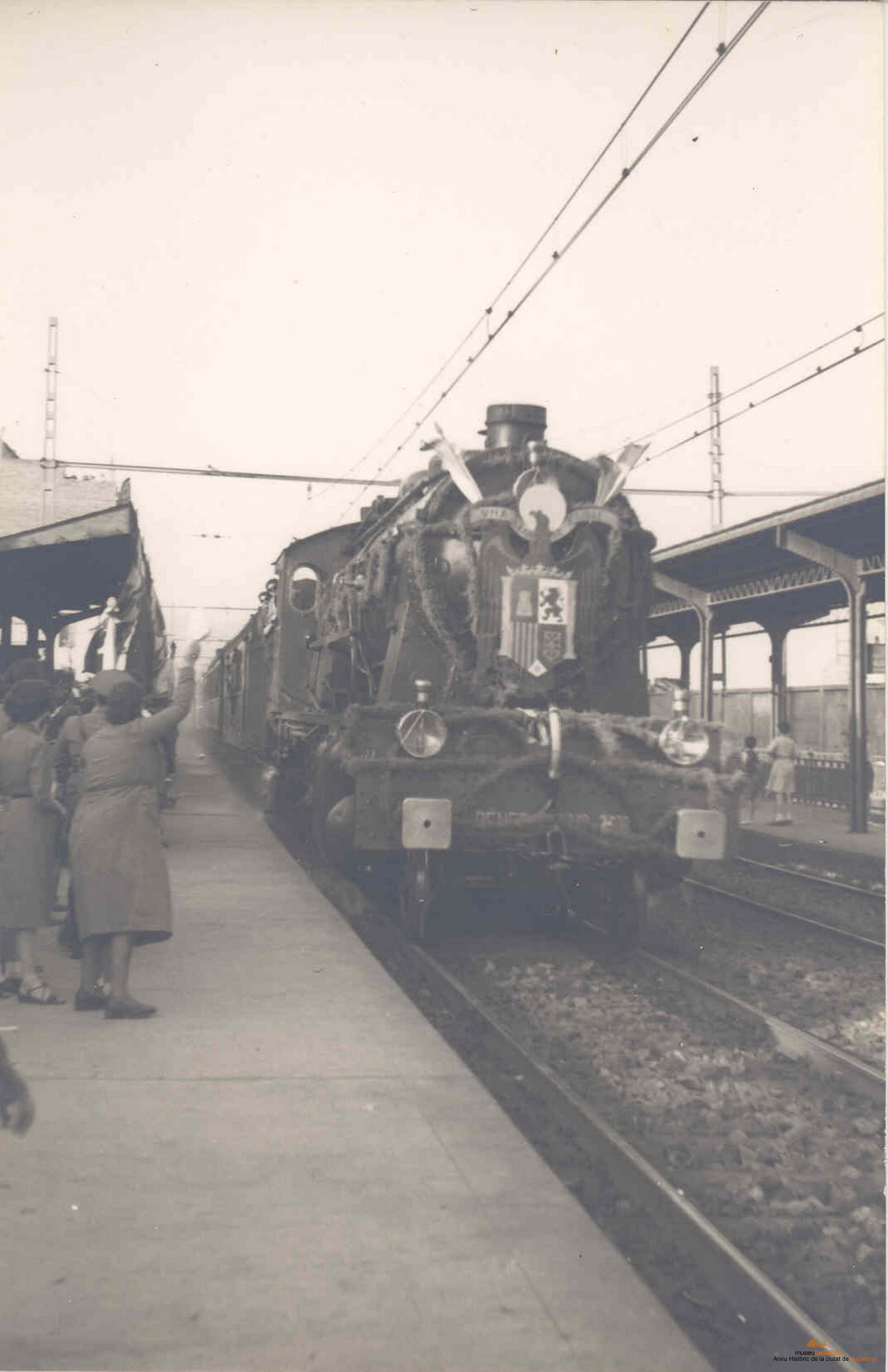 XXXV Congrés Eucarístic Internacional: pas per lestació del tren del Cardenal Tedeschini (representant del Vaticà)