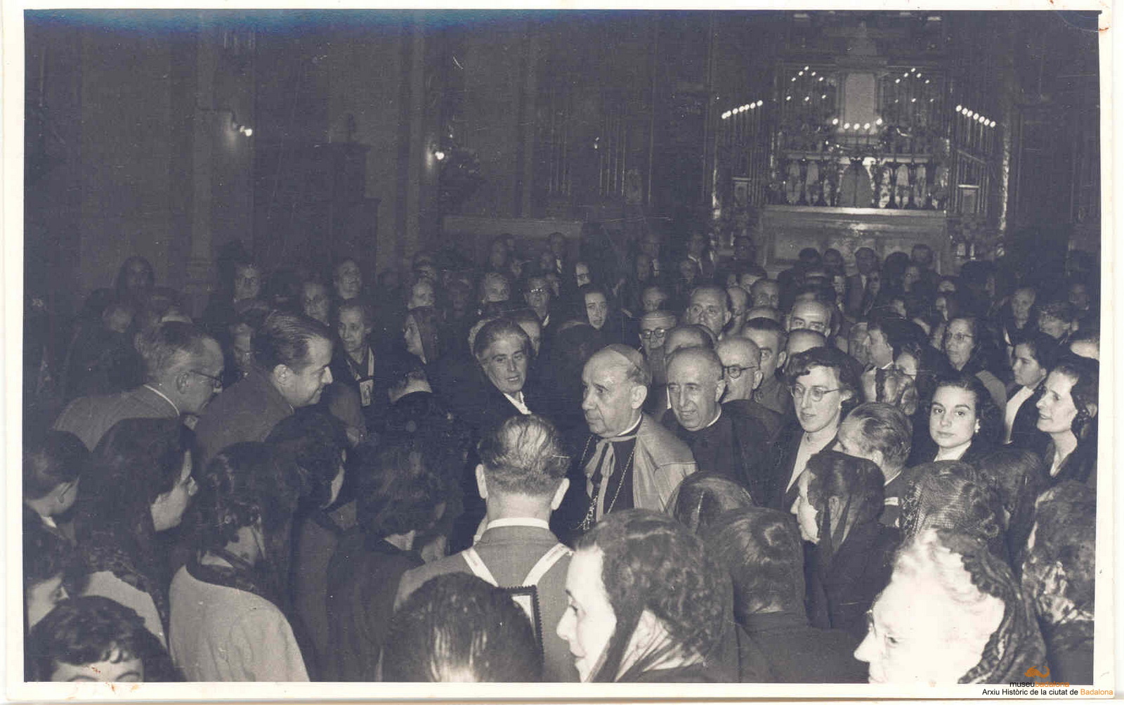 Centenari convent Divina Provindència. Interior de l'església amb el bisbe Gregori Modrego per la benedicció de les imatges de Santa Clara i Sant Francesc d'Assís
