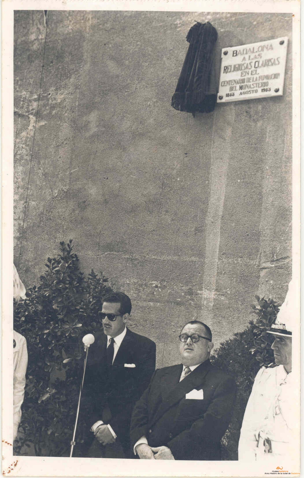 Centenari convent Divina Providència. L'alcalde Lluís F. Maristany i el tinent de cultura Josep de Hita, pronunciant un discurs després de descobrir una placa commemorativa del centenari