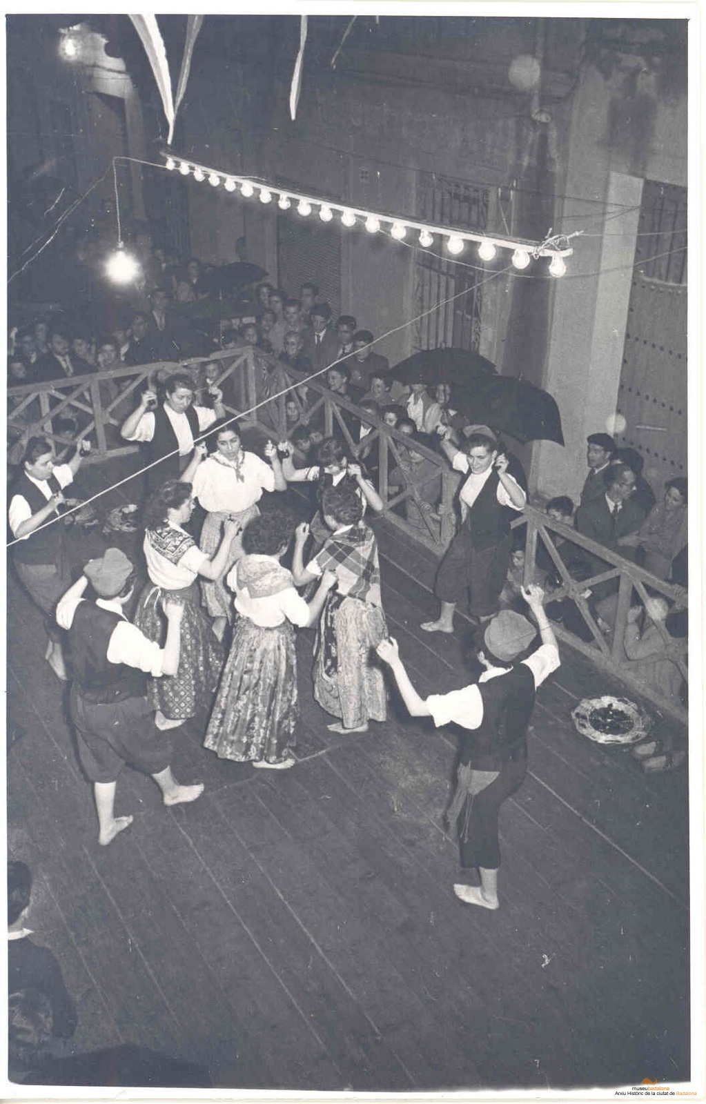 Acte dhomenatge a Madrona Estapé el seu 100 aniversari. Cors i cos de dansa de falange ballant davant la casa de Madrona Estapé
