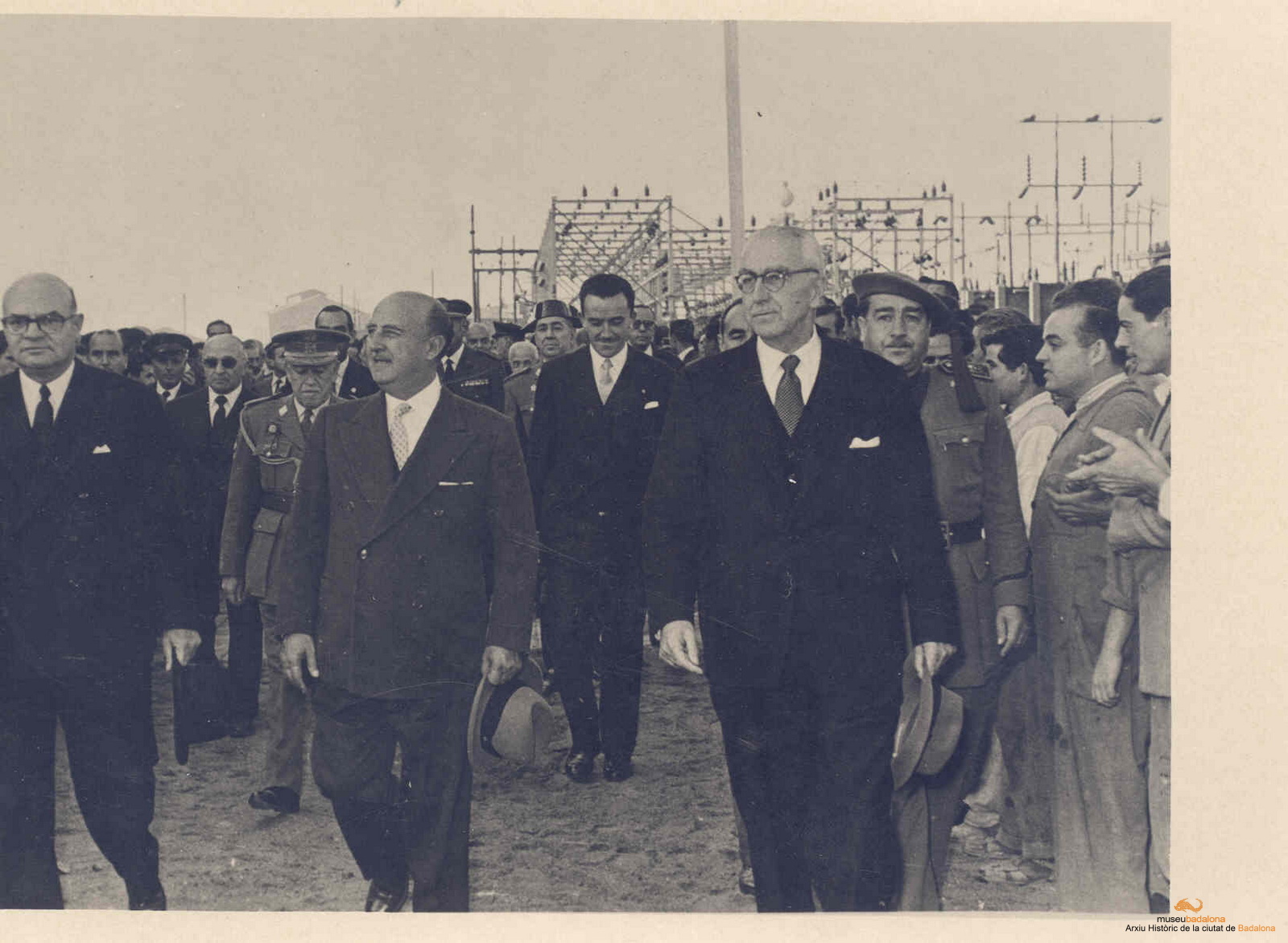 Inauguració nova central tèrmica Badalona I de FECSA. Francisco Franco amb el Ministre dIndústria i Governació inaugura la nova central tèrmica Badalona I de FECSA