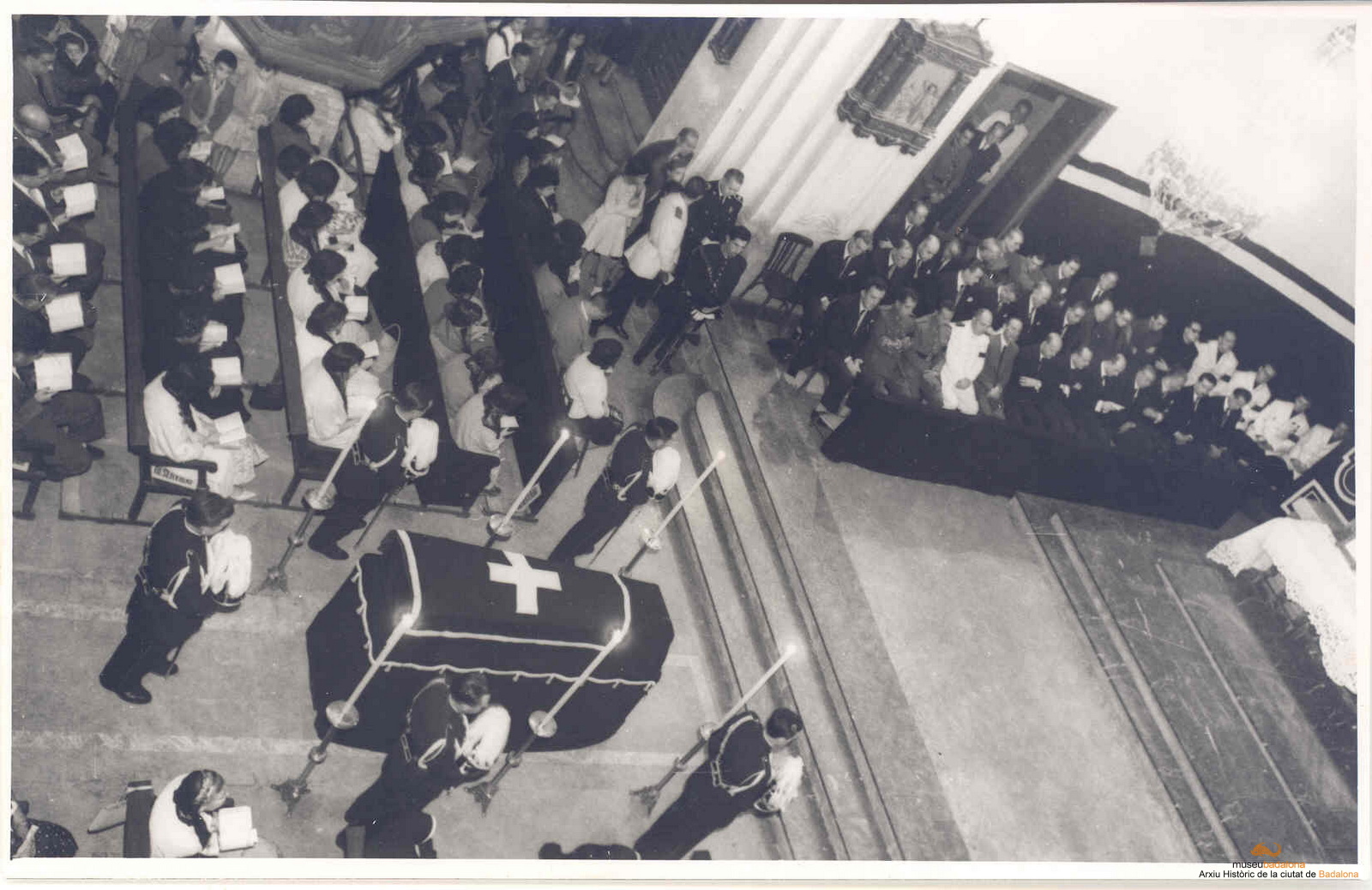 Celebració duna missa de rèquiem per la mort de Pius XII. Vista general de l'interior església de Santa Maria: celebració duna missa de rèquiem per la mort de Pius XII