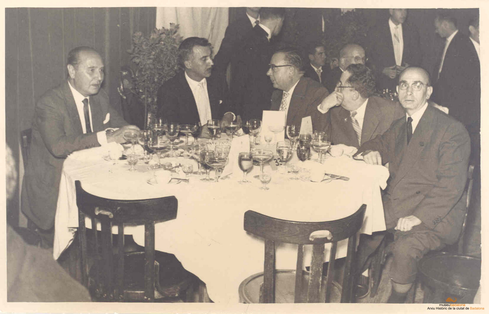 Nomenament del Marquès de Castellflorite com a fill predilecte de Badalona. Taula en el sopar homenatge al marquès. S'hi veu Josep M. Cuyàs Tolosa
