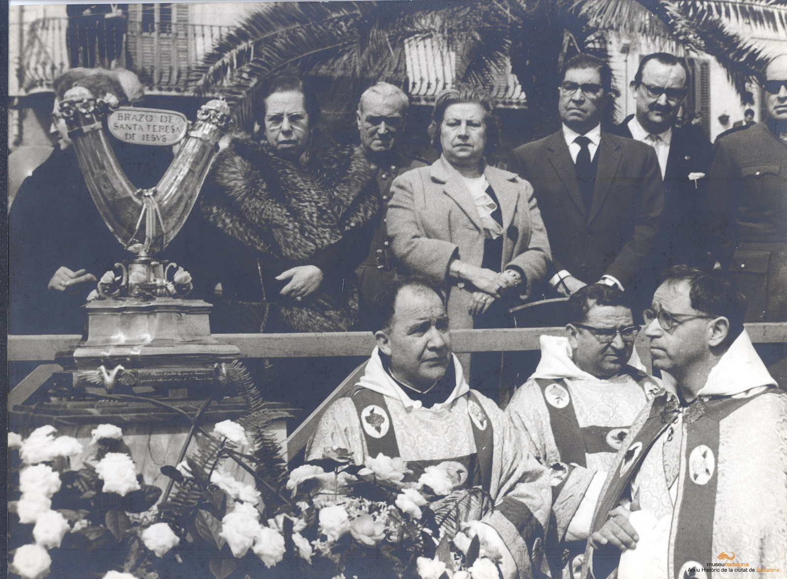 El braç incorrupte de Santa Teresa a Badalona. Processó i mostra a l'església dels Pares Carmelites. Autoritats a la Rambla