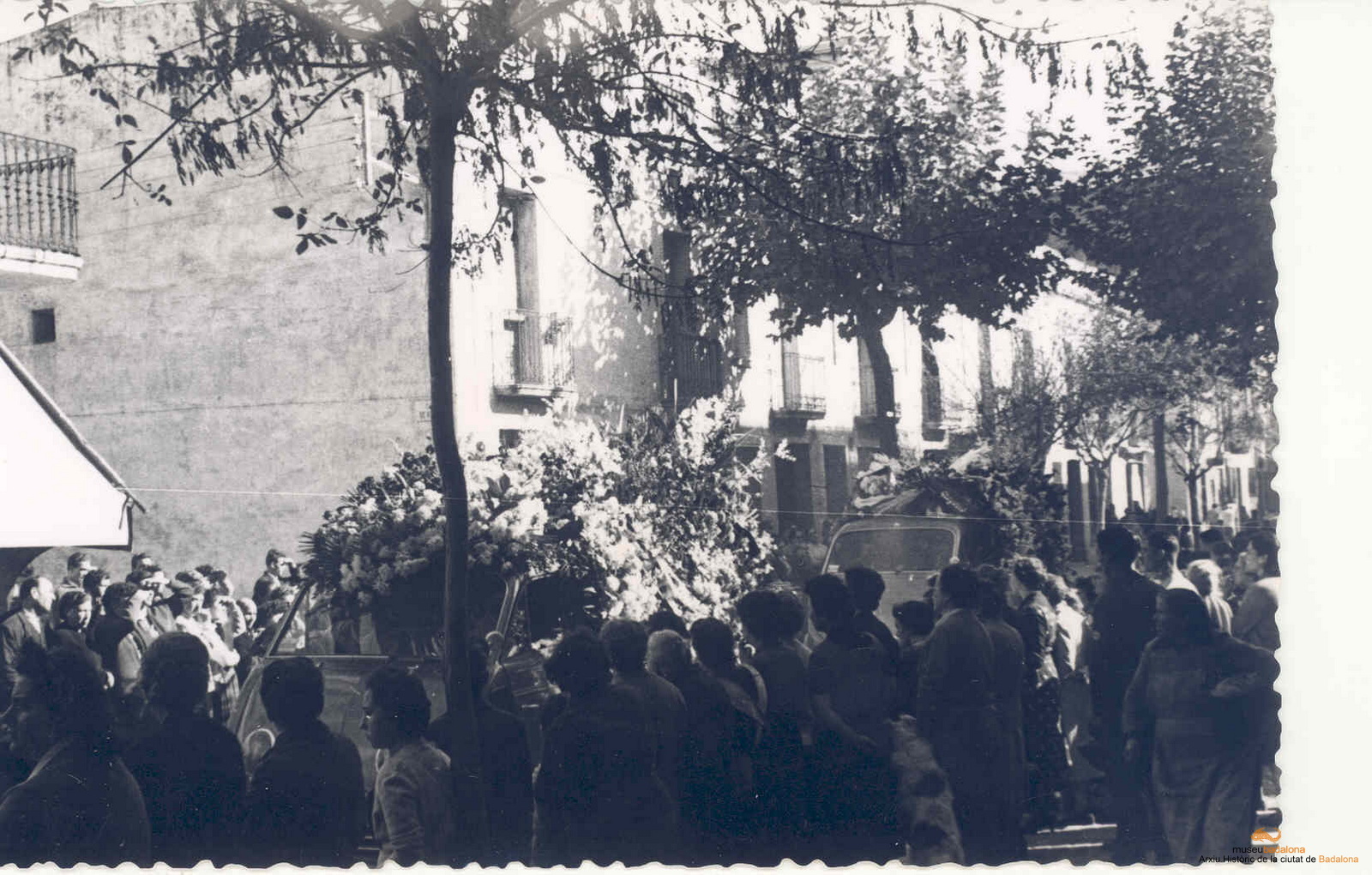 Trasllat restes Enric Borràs al cementiri de Badalona. Cotxe de morts amb les restes d'Enric Borràs al carrer d'en Prim