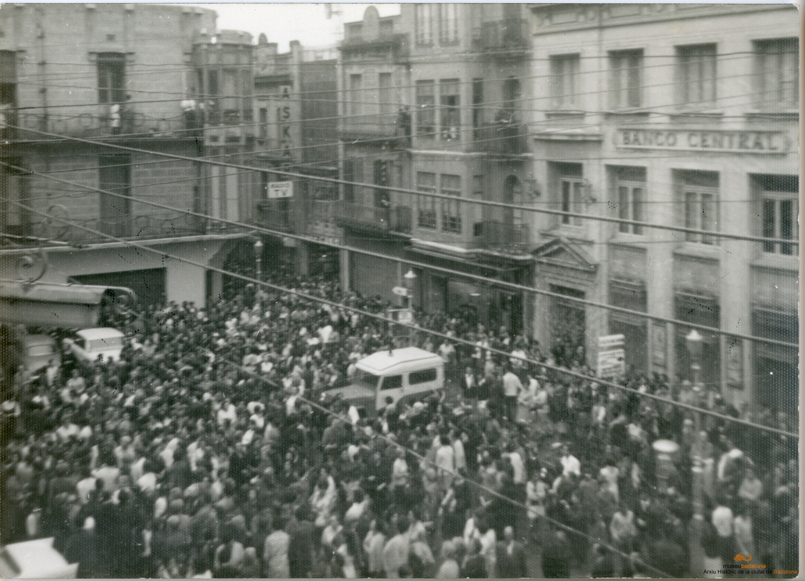 Manifestació de dones contra el polvillo negre que emetia la central Badalona I de FECSA. Vista general de la plaça de la Vila