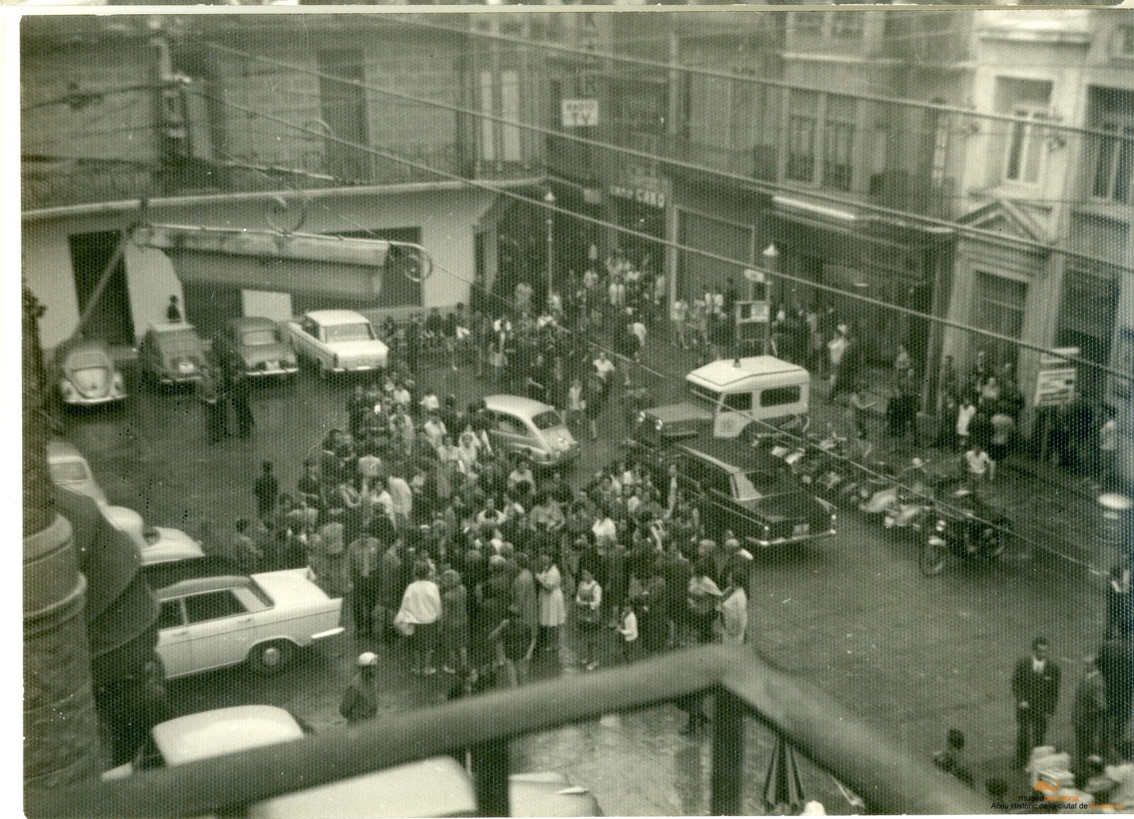 Manifestació de dones contra el polvillo negre que emetia la central Badalona I de FECSA. Vista general de la plaça de la Vila