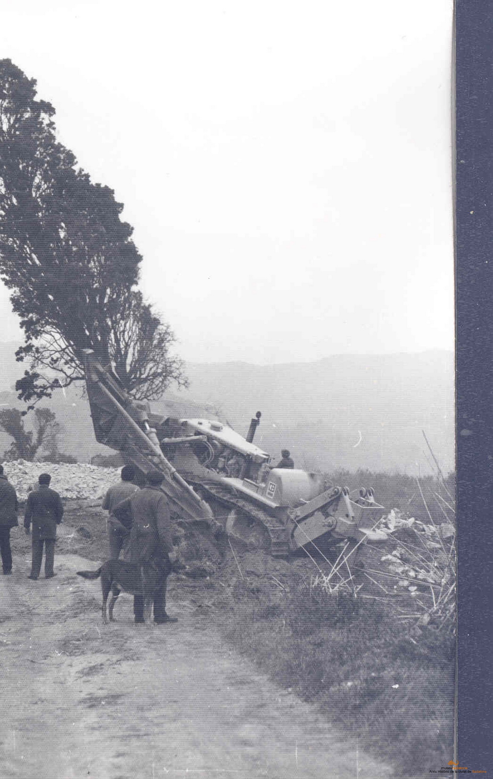 Enderroc de la masia de Can Ruti. Vista general de la zona amb una màquina enderrocant les parets