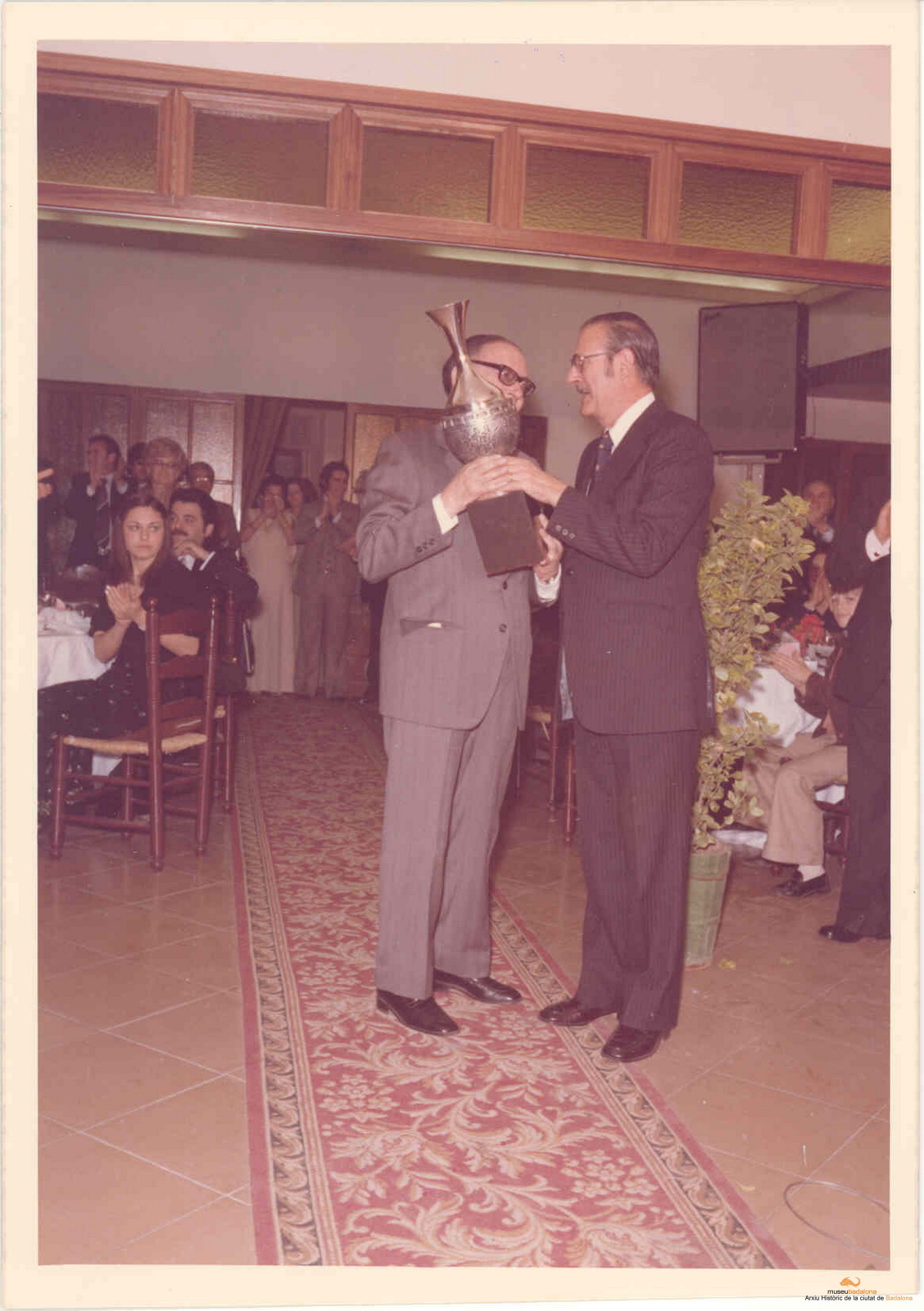 L'alcalde Caballeria entrega el trofeu de badaloní de l'any (concedit per Revista de Badalona) a Josep M. Cuyàs