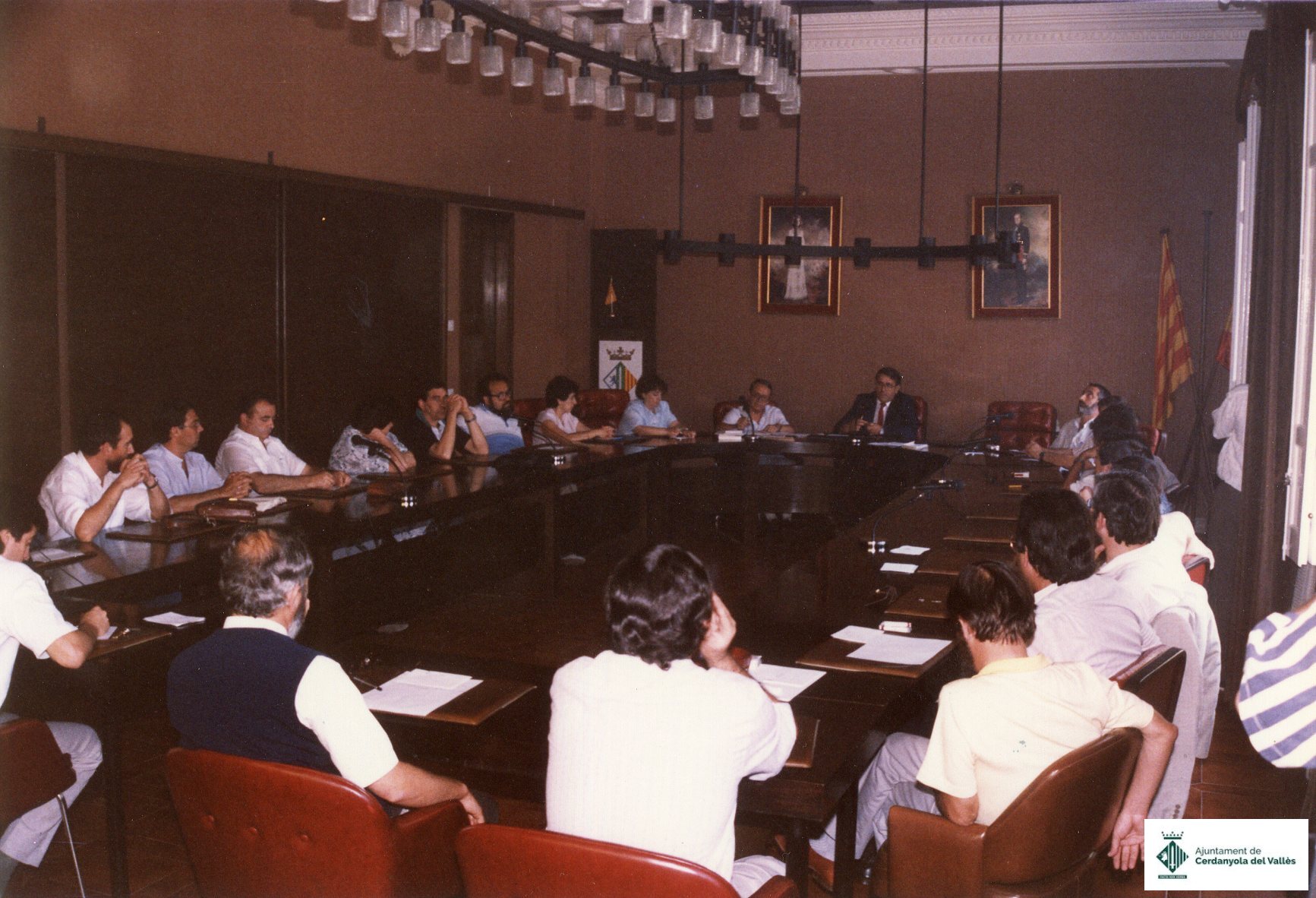 Sessió de la Sala de Plens de l'Ajuntament de Cerdanyola el Vallès amb els regidors celebrada l'any 1987 durant el transcus del tercer mandat de l'alcalde Celestino Sánchez González (Partit Socalista de Catalunya)