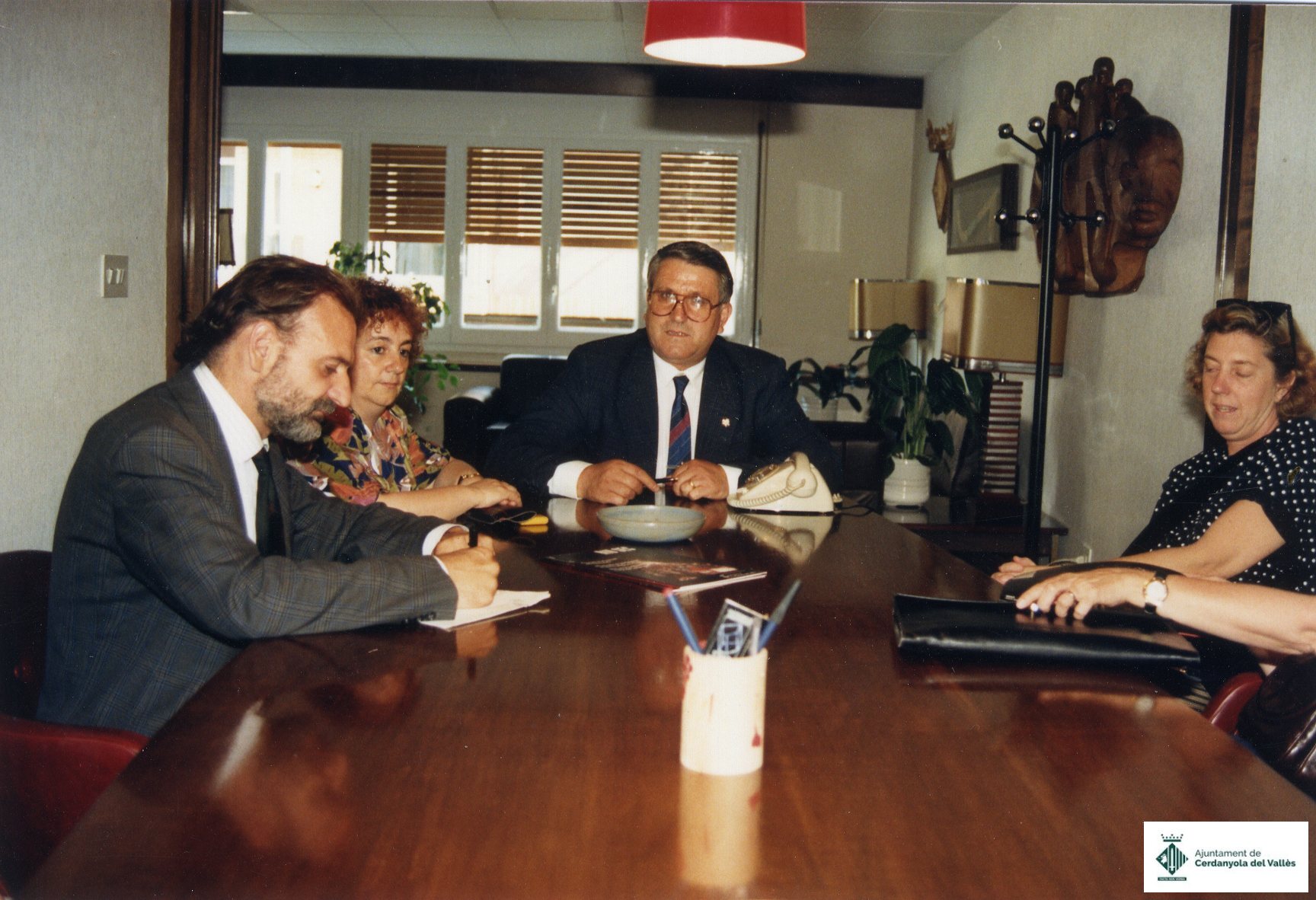 Acte de signatura del conveni amb la Creu Roja dut a terme al despatx d'alcaldia l'any 1990