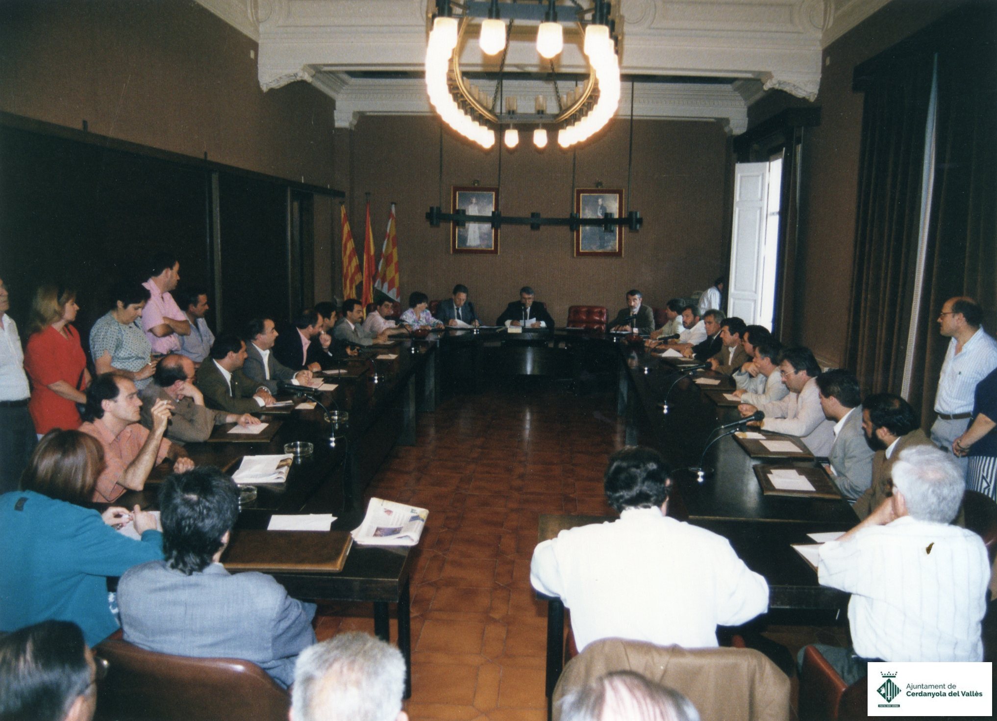 Acte de constitució del primer ple municipal del mandat 1991-1995 realitzat a la Sala del Ple de l'Ajuntament de Cerdanyola del Vallès al juny de 1991
