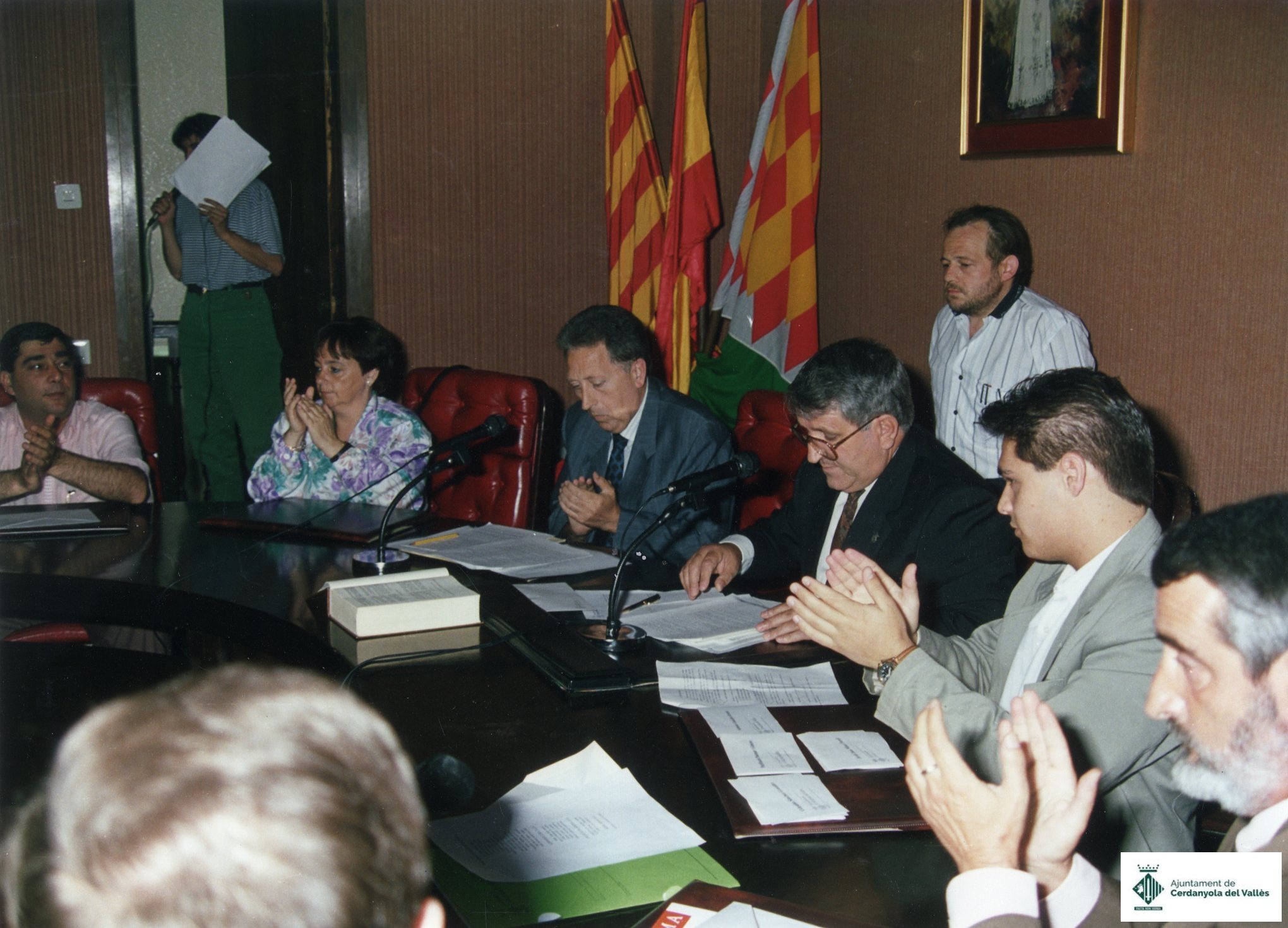 Acte de constitució del primer ple municipal del mandat 1991-1995 realitzat a la Sala del Ple de l'Ajuntament de Cerdanyola del Vallès al juny de 1991