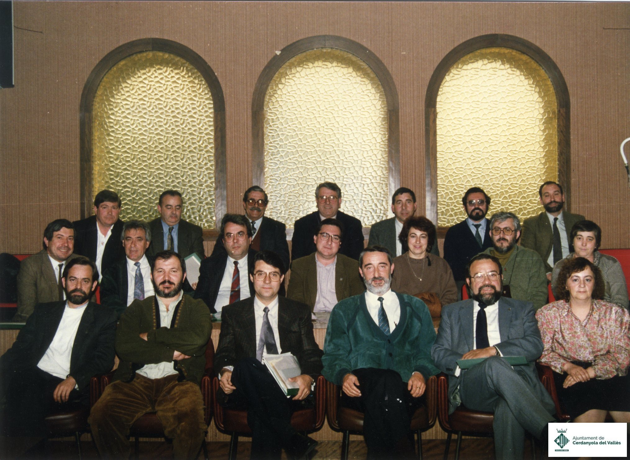 Els membres del govern municipal a la Sala del Ple de l'Ajuntament de Cerdanyola del Vallès l'any 1991