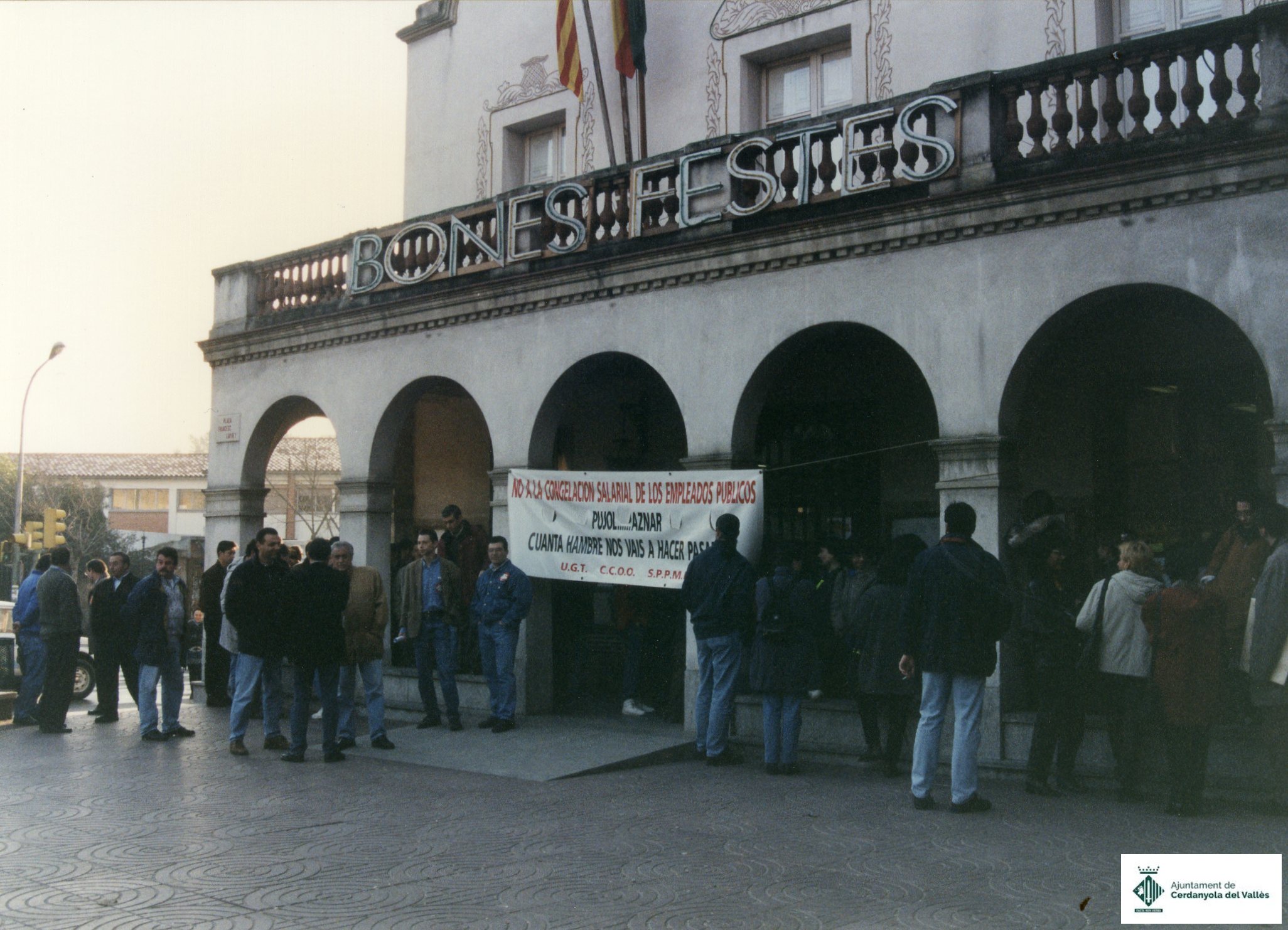 Manifestació pels carrers de Cerdanyola del Vallès per la vaga de funcionaris de desembre de 1996