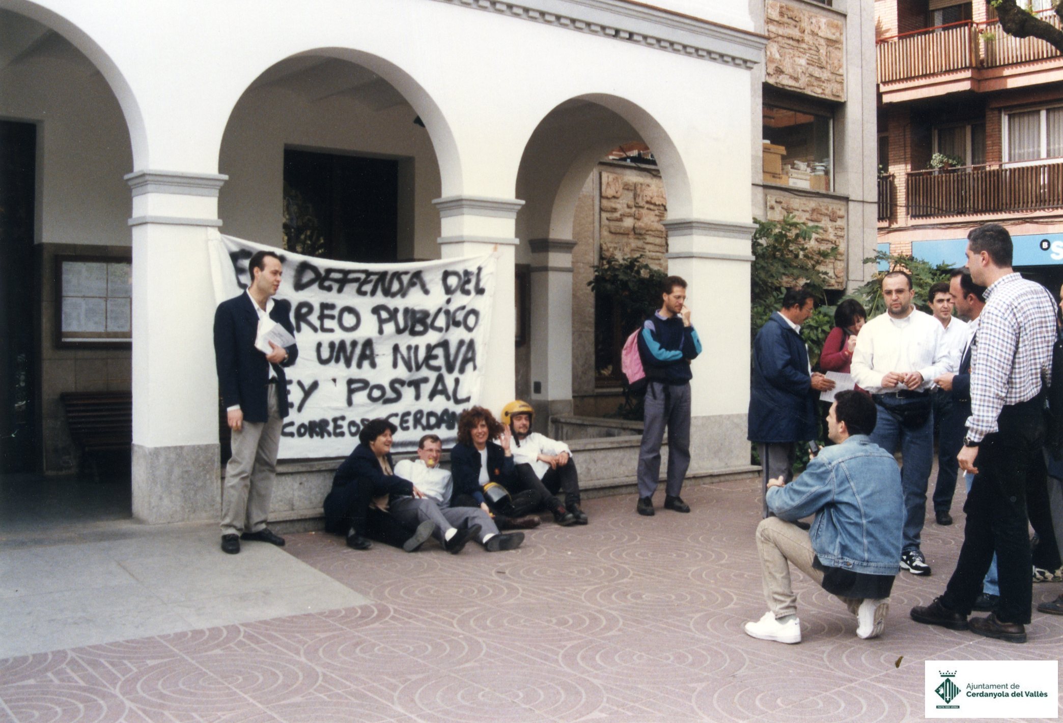 Manifestació del personal de la Societat Estatal de Correus i Telègrafs de Cerdanyola del Vallès devant l'Ajuntament el març de 1998