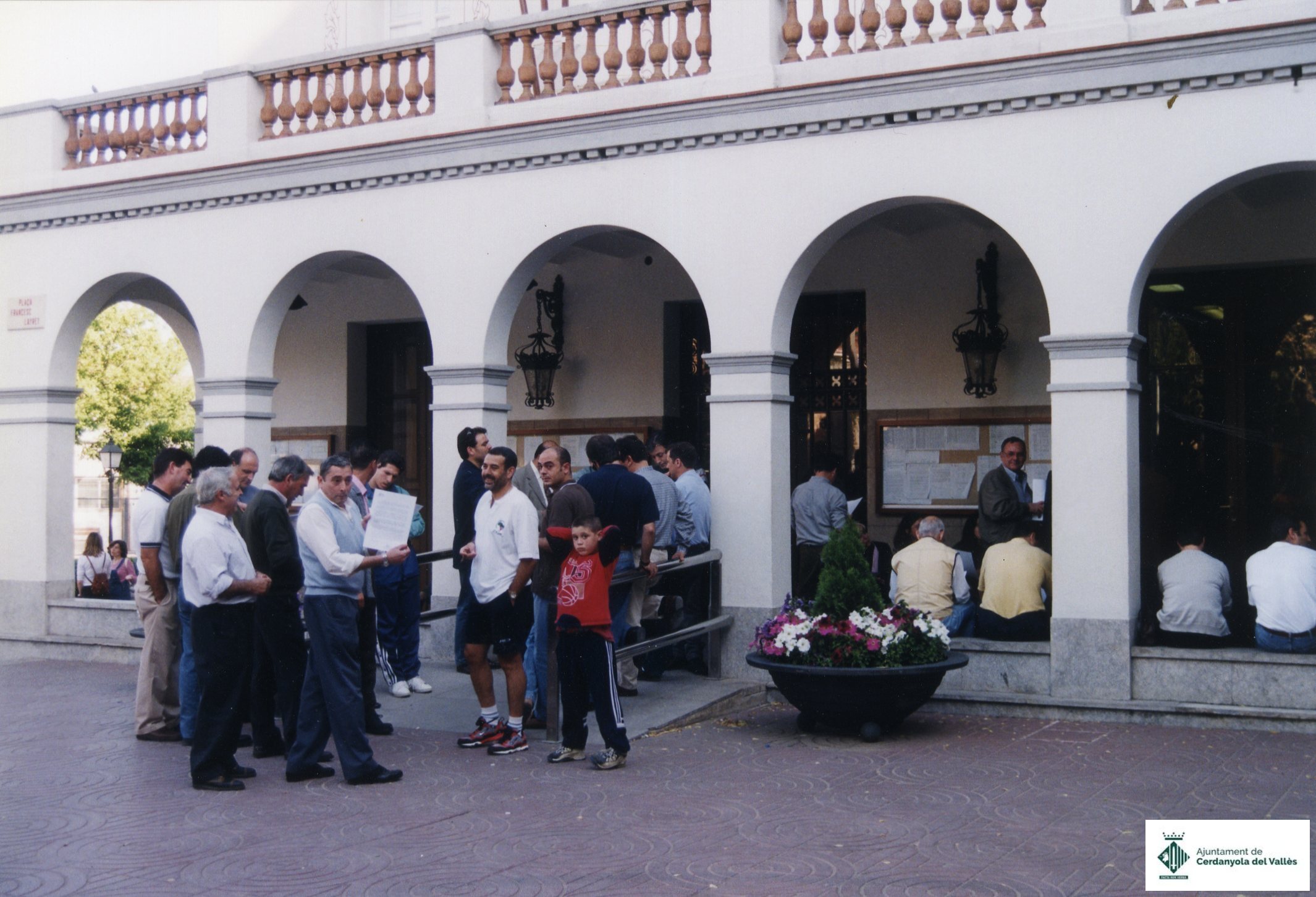 Concentració davant l'Ajuntament de Cerdanyola del Vallès en protesta per un conveni municipal el maig de 1999