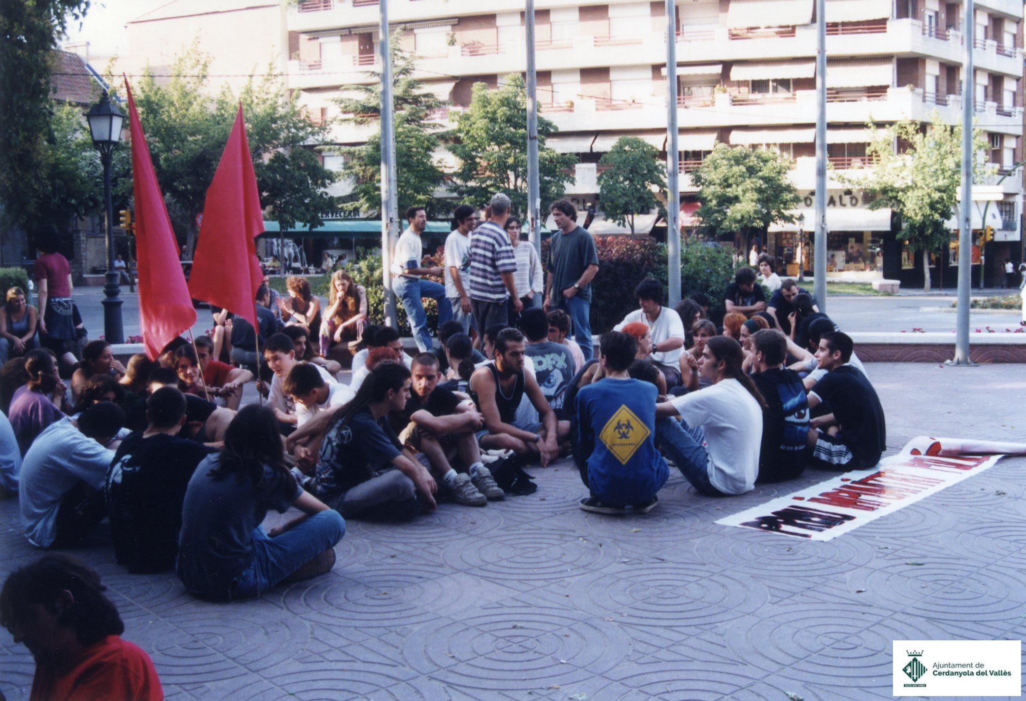 Joves es concentren davant l'Ajuntament de Cerdanyola del Vallès el juny de 1999 en contra de la impunitat policial