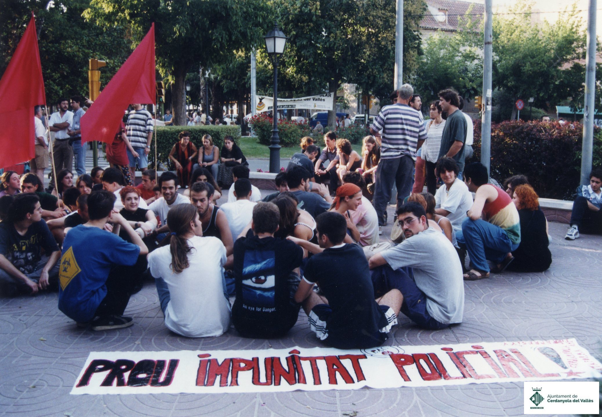 Joves es concentren davant l'Ajuntament de Cerdanyola del Vallès el juny de 1999 en contra de la impunitat policial