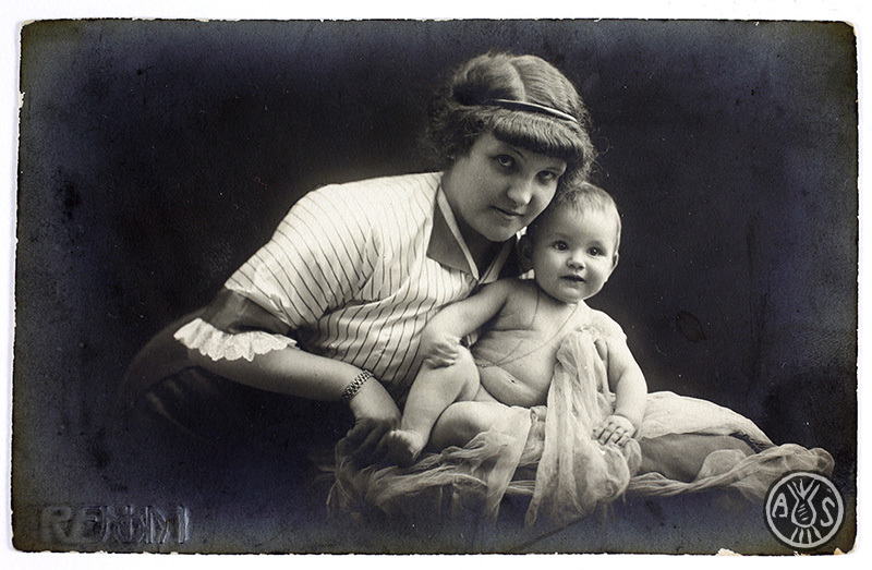 Retrat d'estudi d'una dona i un infant sense identificar. Barcelona. Edició postal
