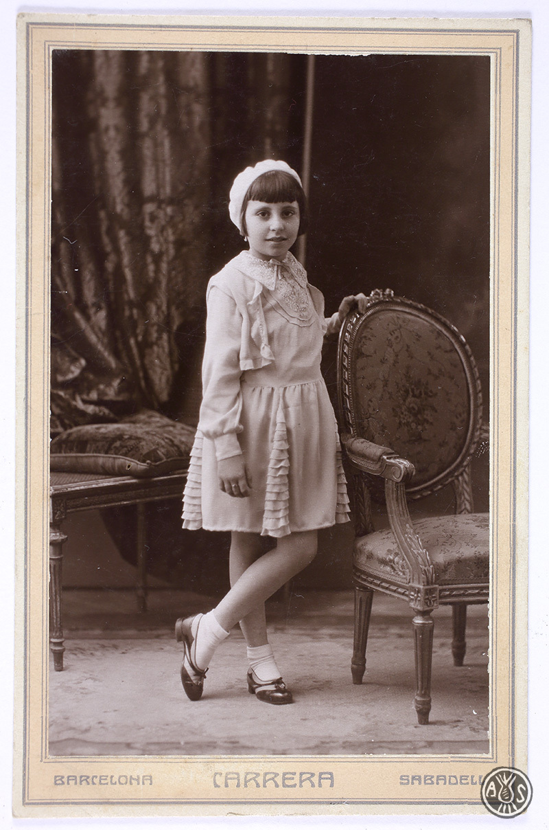Retrat d'estudi d'una noia jove sense identificar. Sabadell. Edició postal