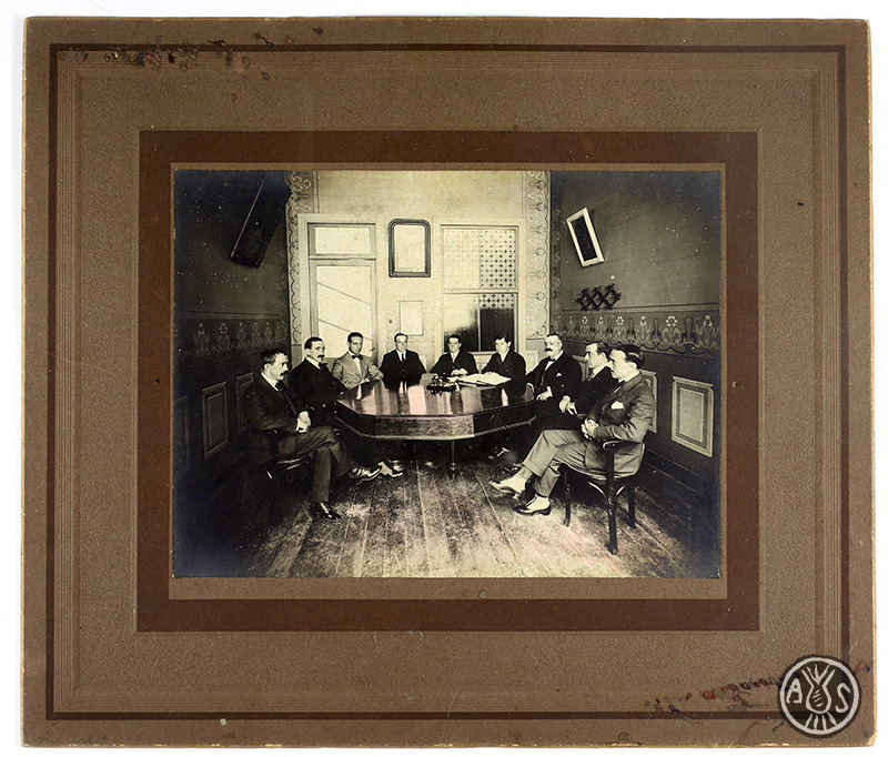 Retrat d'un grup d'homes asseguts al voltant d'una taula. Sabadell