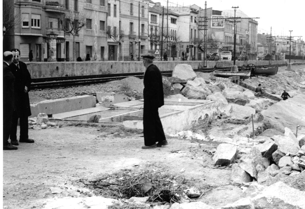 Alcalde Salazar al costat esquerra. S'hi veu el safareig municipal.