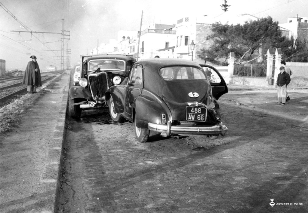 Xoc frontal d'un cotxe francès amb un altre a la carretera de Barcelona.