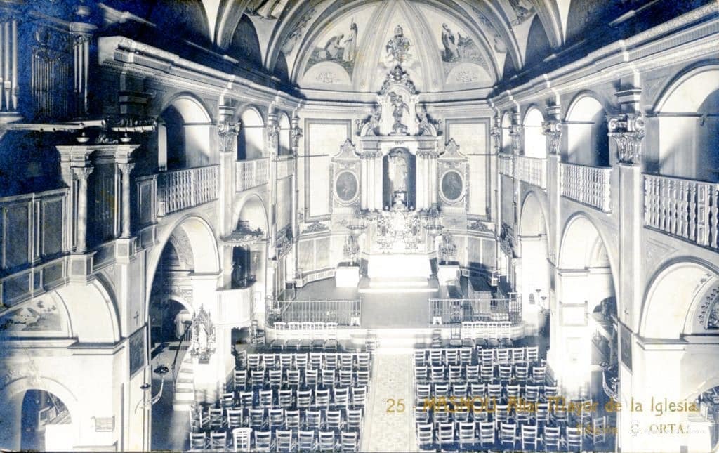 Altar major. Interior de l'església parroquial abans del 1936. L'original és una còpia de mala qualitat.