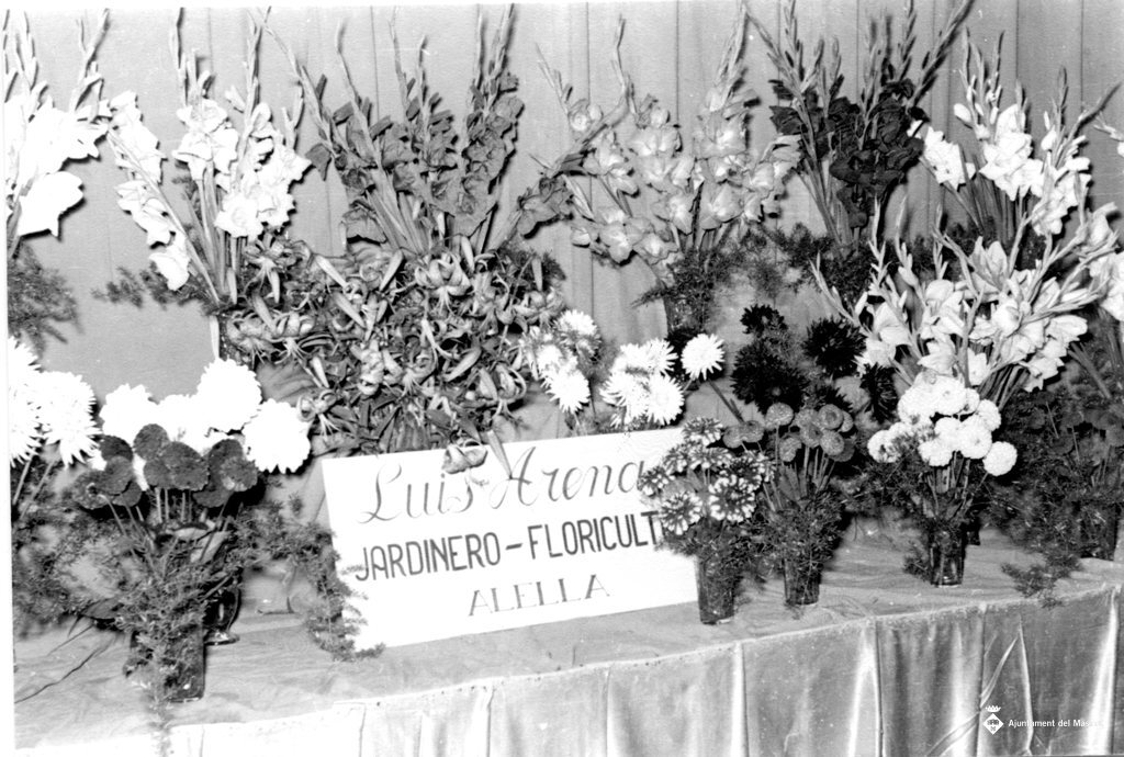 Mostra floral a càrrec de Lluís Arenas, d'Alella. Probablement amb motiu de la festa major.