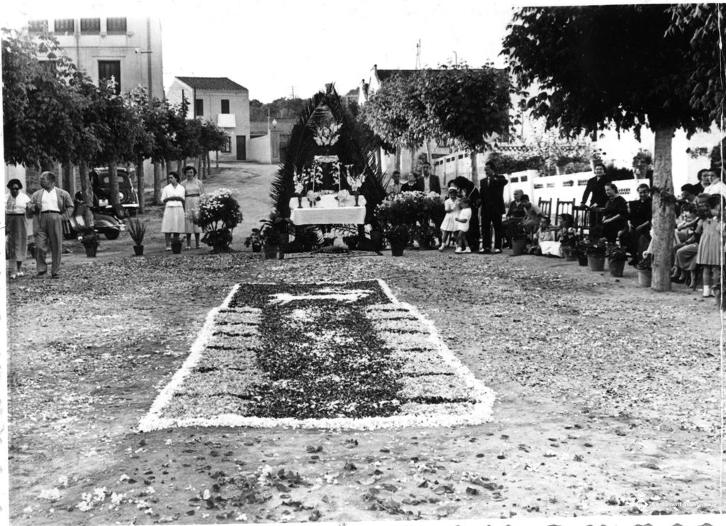 Al fons de la imatge hi ha muntat un altar muntat al mig del carrer.