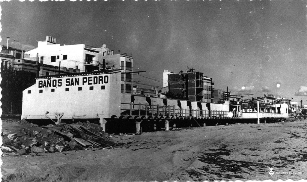 Vista dels banys de Sant Pere, vistos des de la platja.