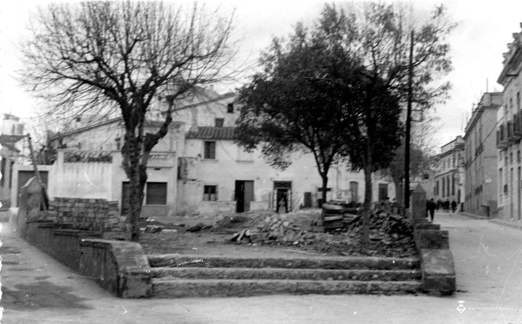 Vista frontal del solar on hi havia l'edifici de correus, en el punt on convergeixen els carrers Bonaventura Bassegoda i Roger de Flor. Actual plaça de la Igualtat.