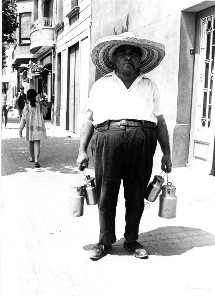 Enmig del carrer, carregat de pots per la llet. A la família es deia Esquilet perquè el pare esquilava animals. Als anys quaranta van patir un crim on va morir la seva mare i un client de la botiga que tenien. Igual a la foto 5893.