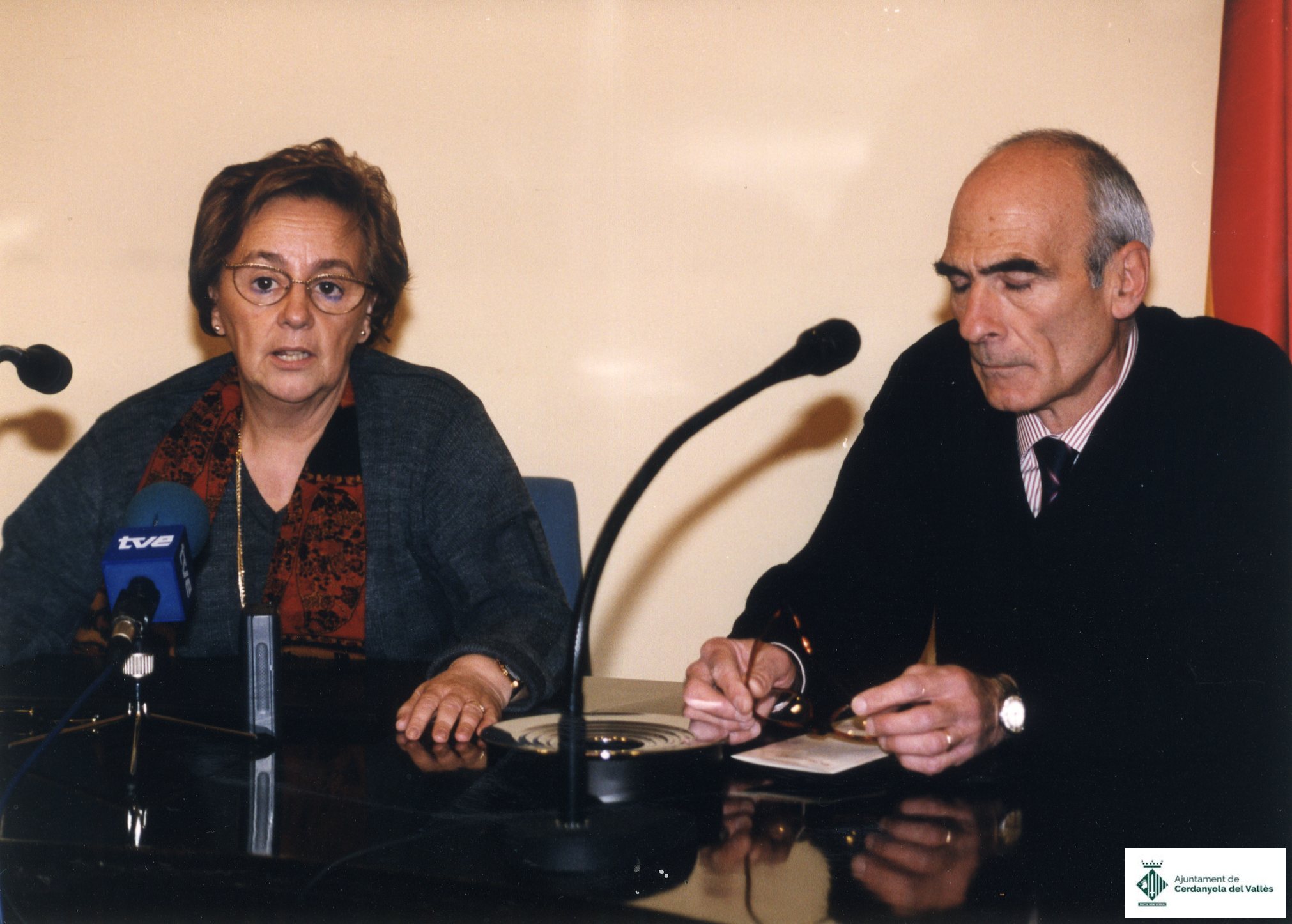 Roda de premsa de l'alcaldesa de Cerdanyola del Vallès, Cristina Real Masdeu, sobre meningitis de febrer de 2000