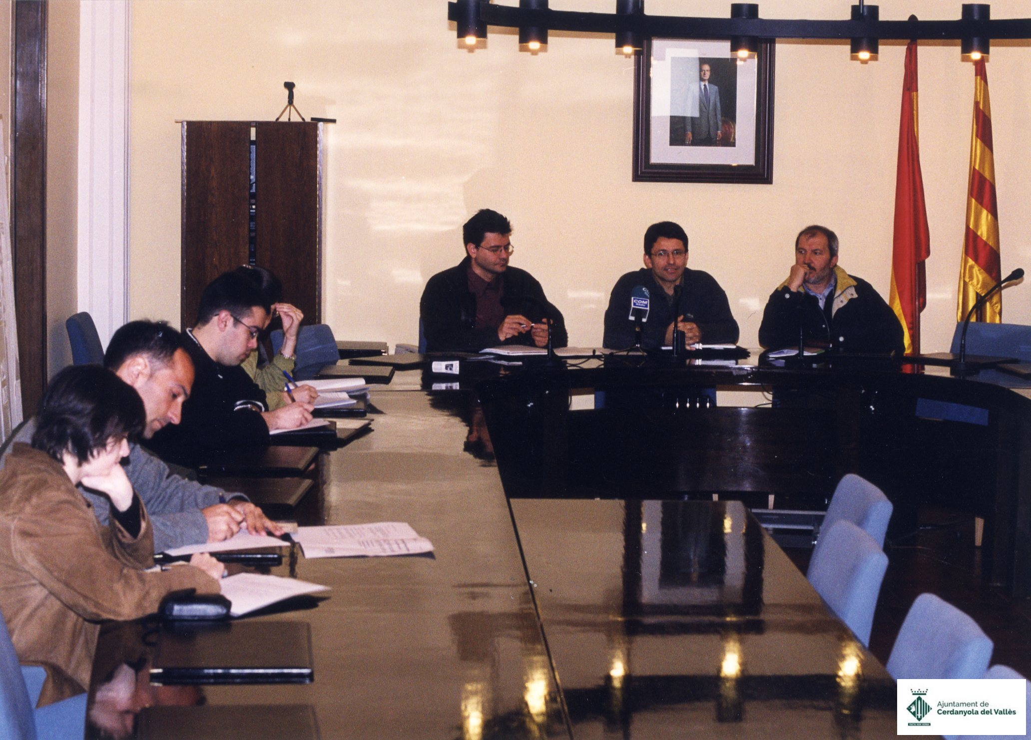 Roda de premsa a la Sala del Ple de l'Ajuntament de Cerdanyola del Vallès de març de 2000 sobre les obres al Riu Sec.