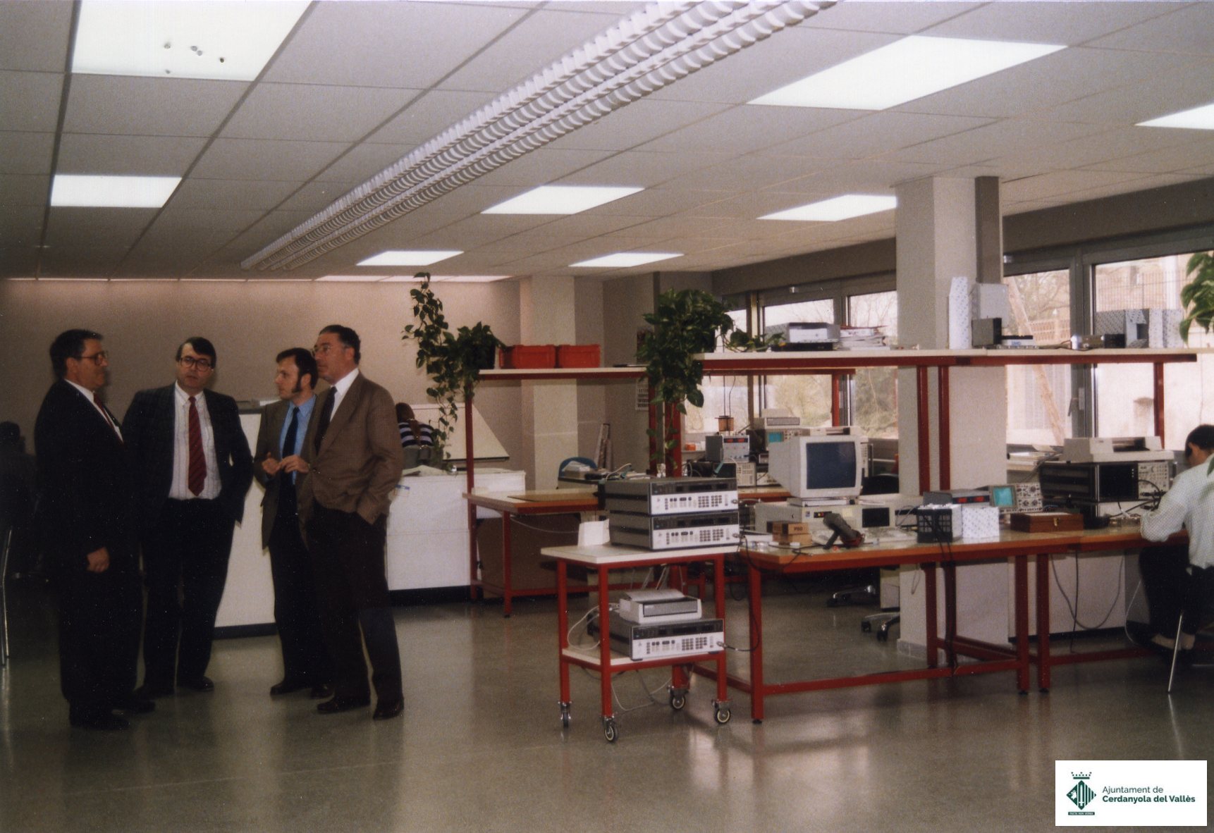 L'alcalde de Cerdanyola del Vallès, Celestino Sánchez González, visita l'empresa TEDEL al Parc Tecnològic del Vallès el març de 1990