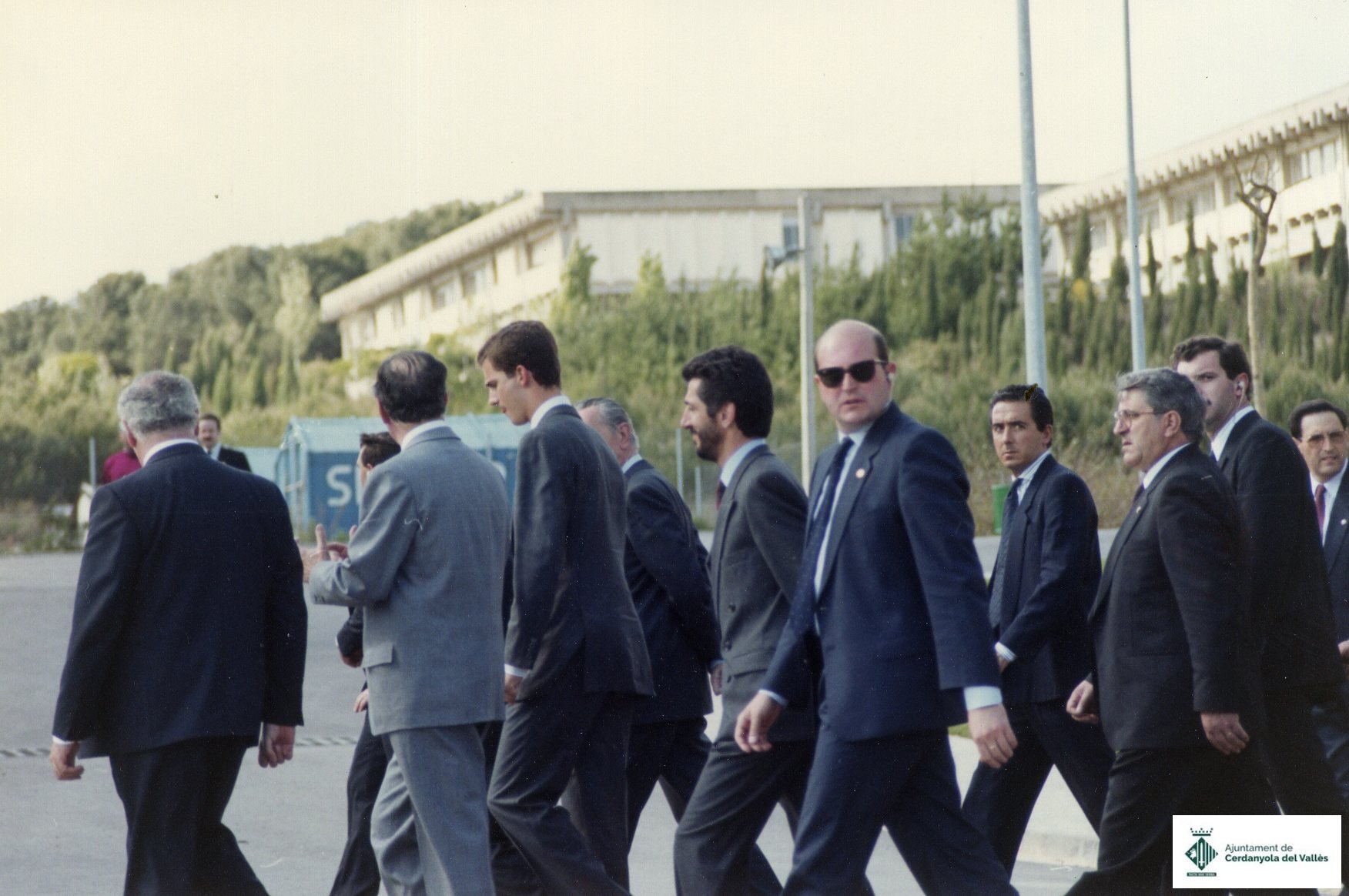 L'Alcalde de l'Ajuntament de Cerdanyola del Vallès, Celestino Sánchez González, assisteix a l'acte de recepció oficial del Príncep Felip de Borbó a la Universitat Auntònoma de Barcelona el 1990