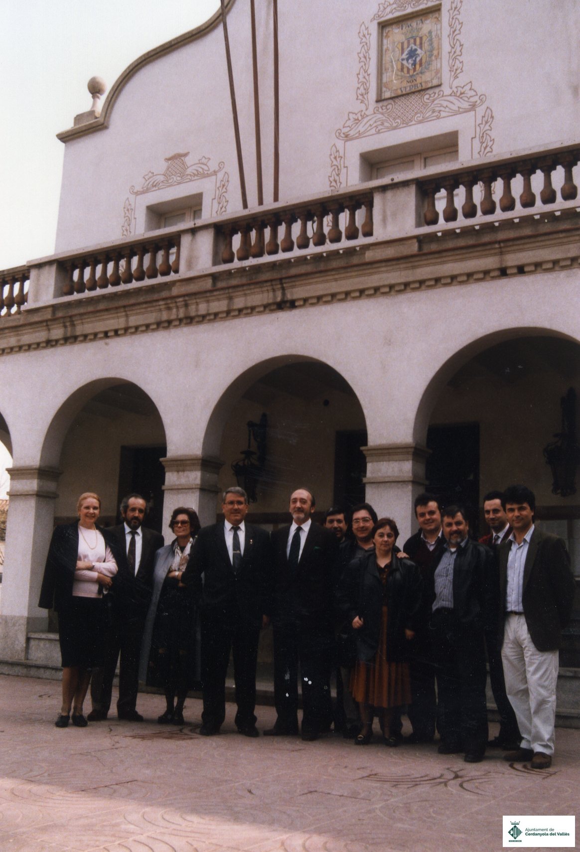 Regidors de l'ajuntament del municipi de Collegno (Itàlia) són rebuts pels membres del govern municipal de Cerdanyola del Vallès, encapçalat per l'alcalde Celestino Sánchez González, el 1990