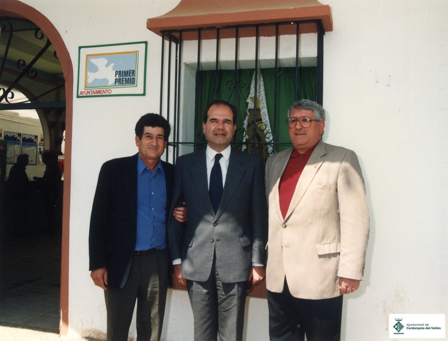 Manuel María Chaves González, ministre en diversos governs socialistes, President de la Junta d'Andalusia entre 1990 i 2007 i President del PSOE entre 2000 i 2012, visita la caseta de la Penya Flamenca de Cerdanyola del Vallès el maig de 1996
