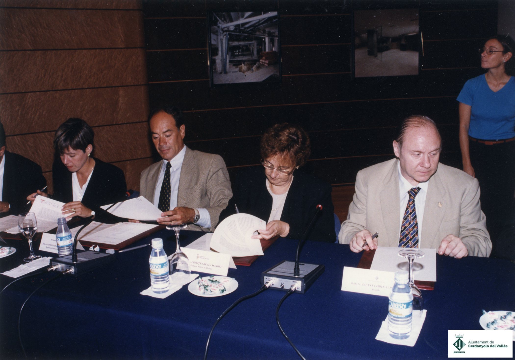 Acte de signatura del conveni ""Viure i Conviure"" celebrat al Centre Cultural Caixa Catalunya el septembre de 1997